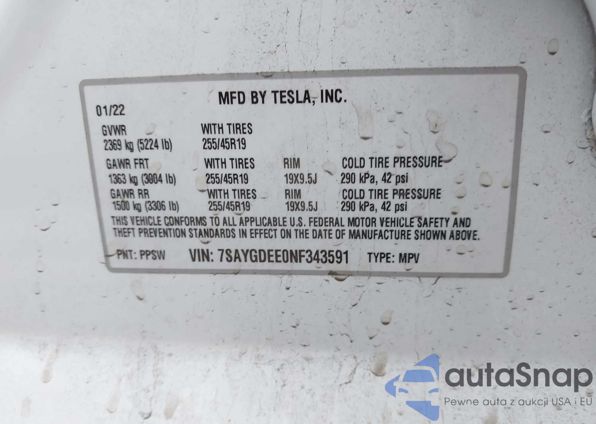 • VIN 7SAYGDEE0NF343591