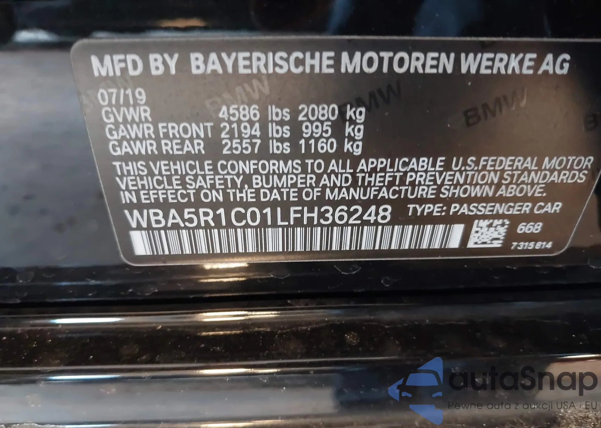 • VIN WBA5R1C01LFH36248