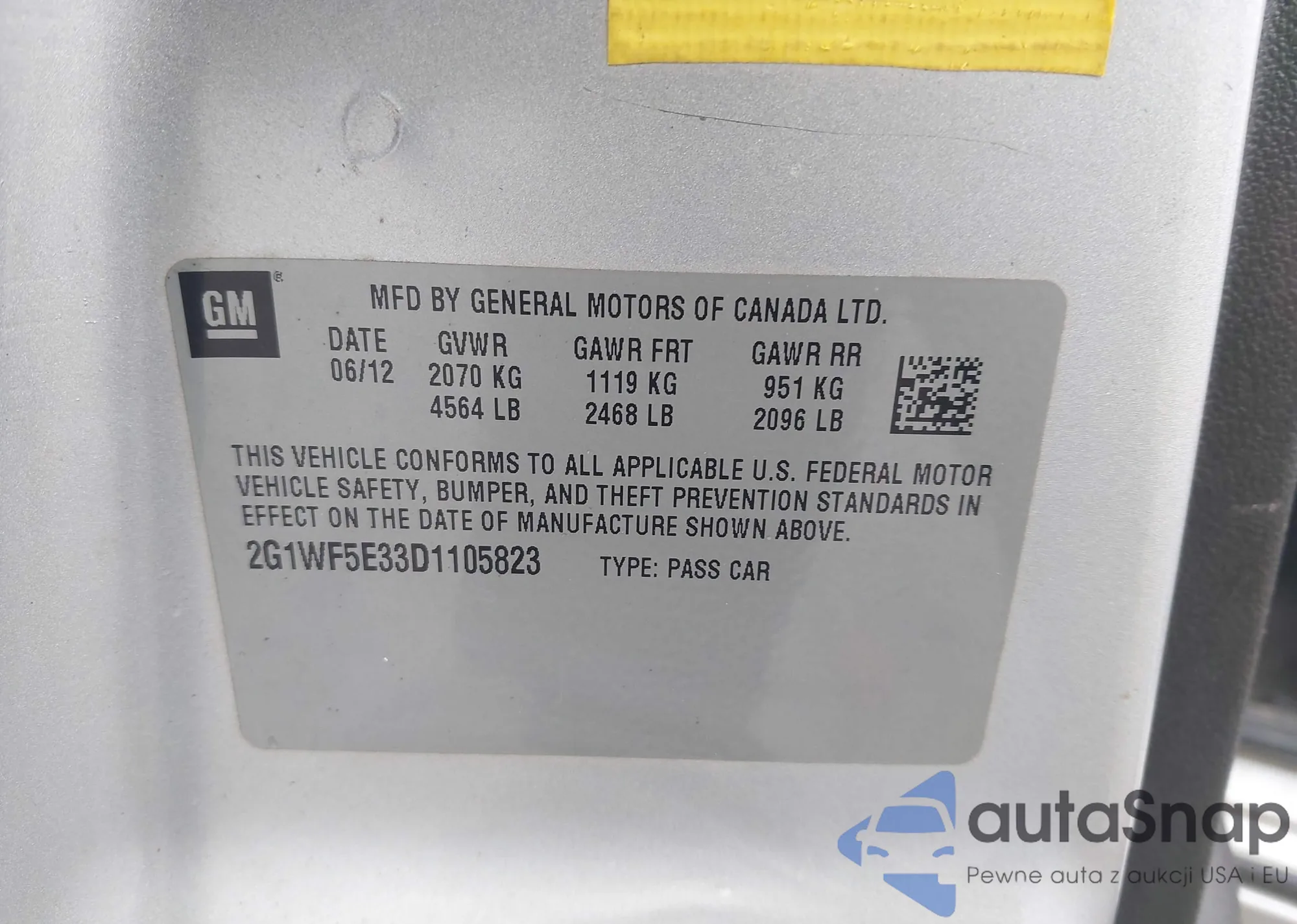 LOT: 41251921 VIN: 2G1WC5E34E1110698