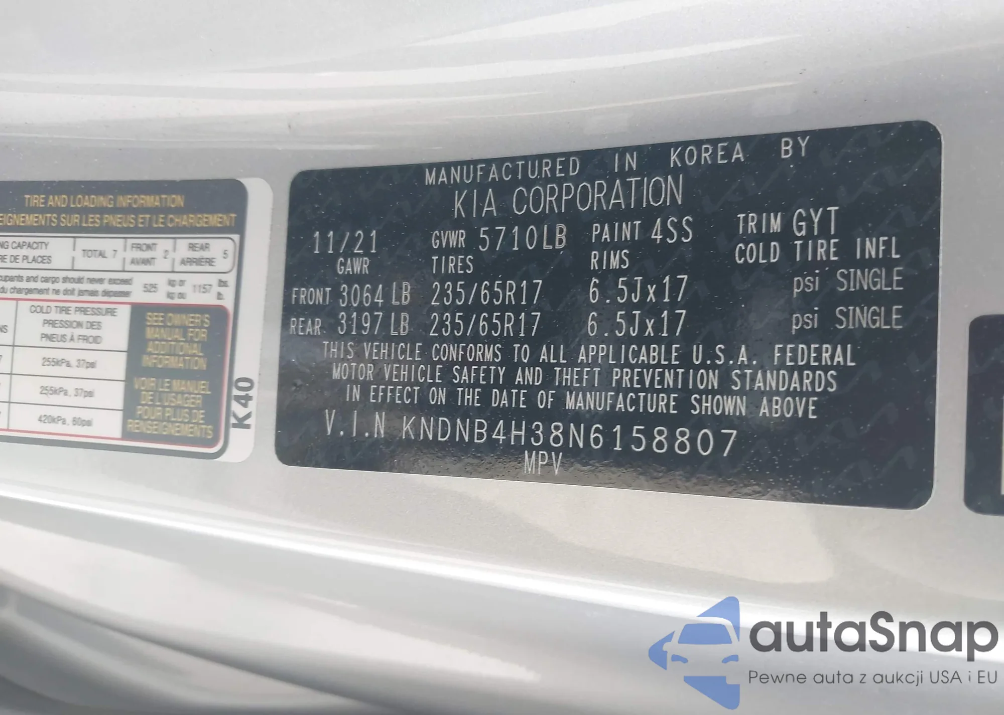 LOT: 41403853 VIN: KNDJ23AU3N7158297