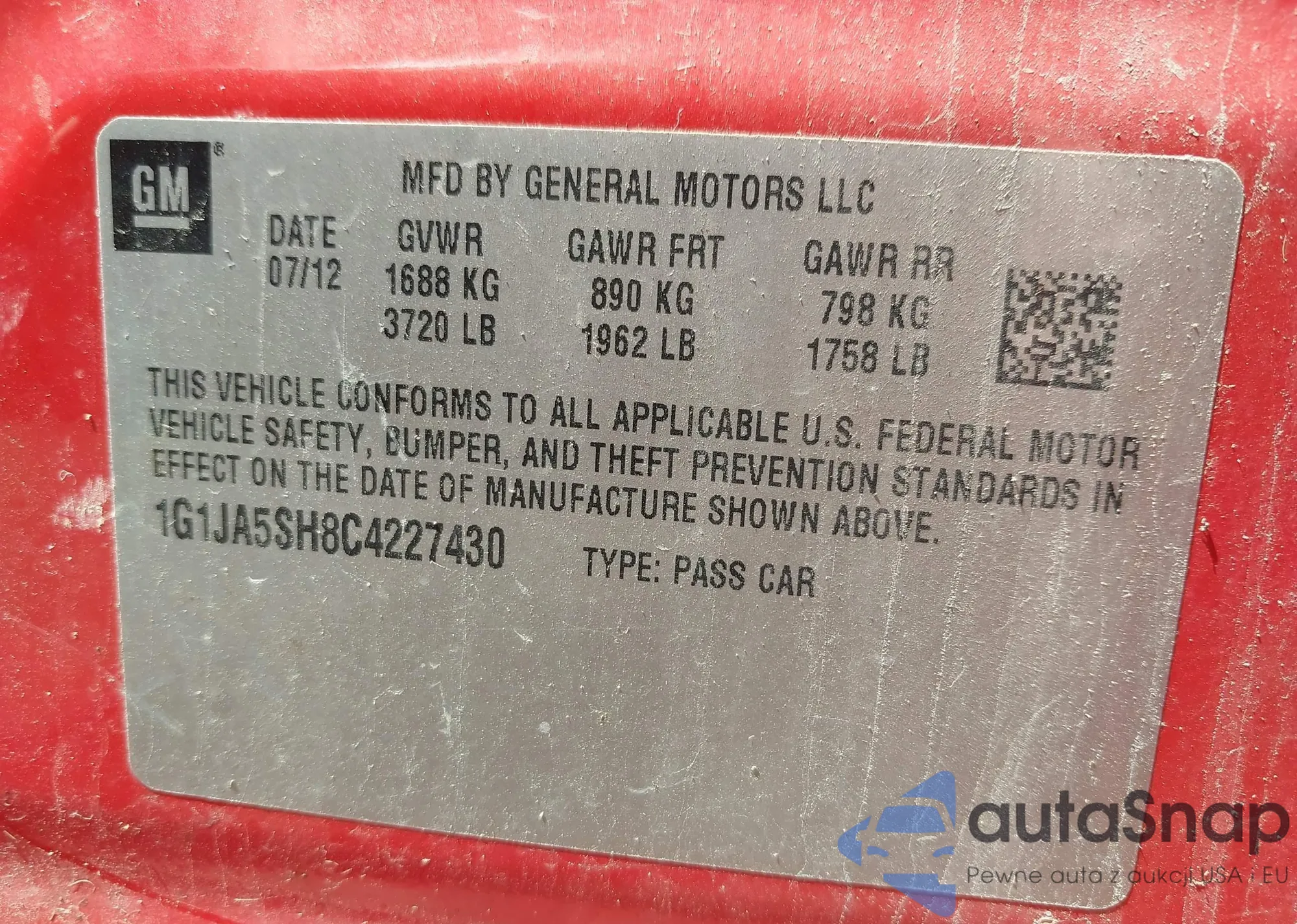 • VIN 1G1JA5SH8C4227430