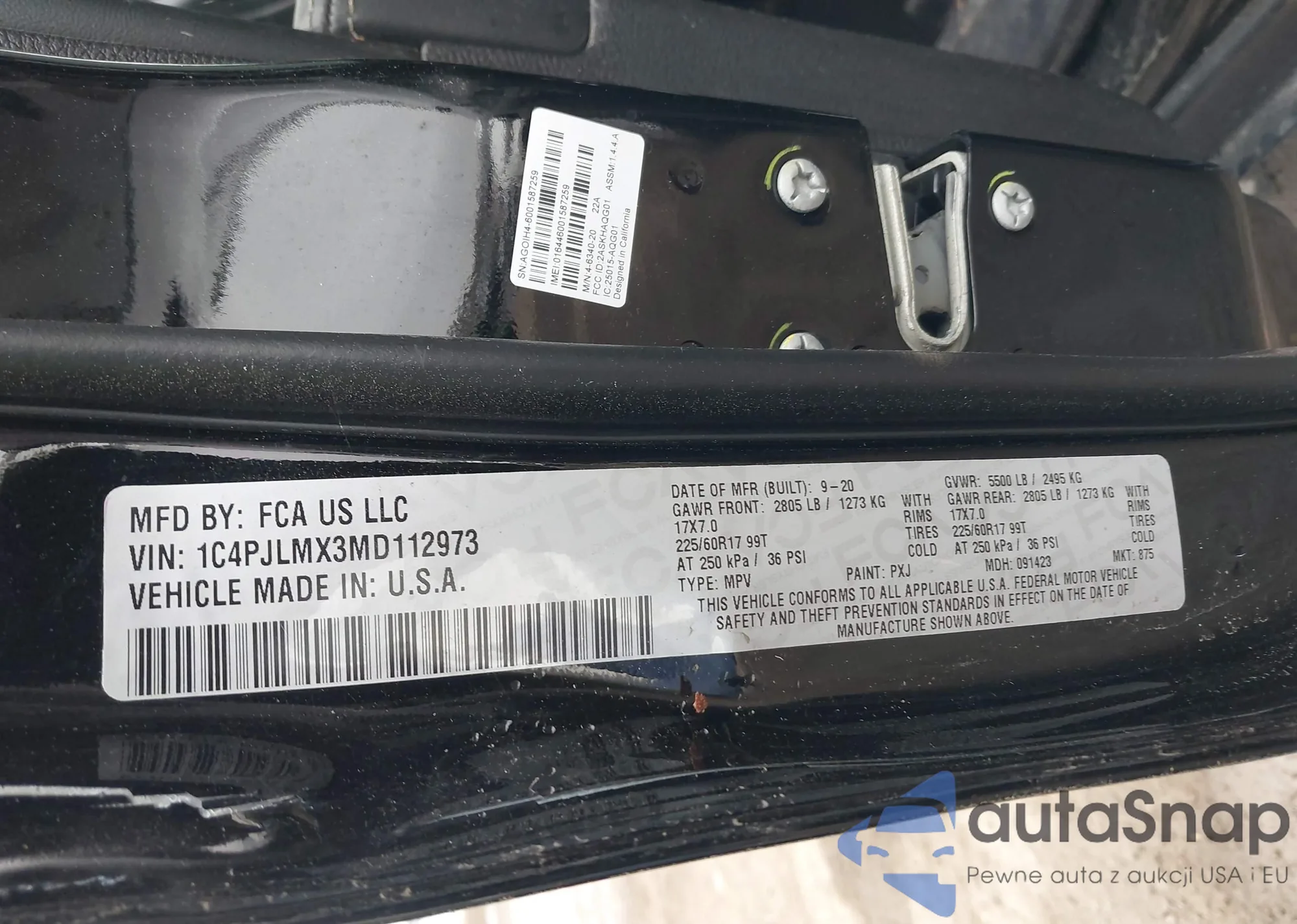 • VIN 1C4PJLMX3MD112973