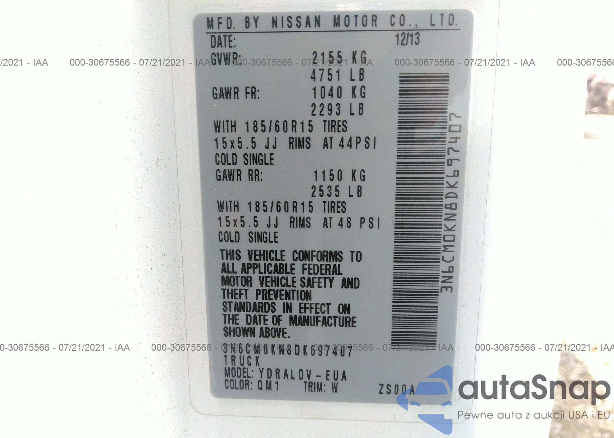 LOT: 30675566 VIN: 3N6CM0KN8DK697407