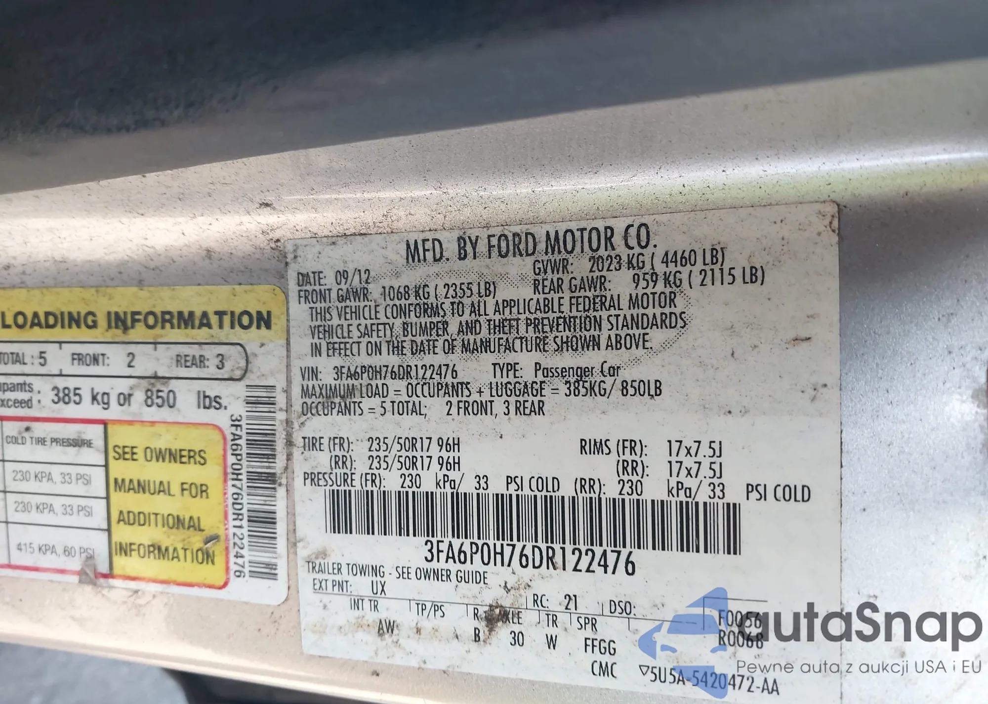 • VIN 3FA6P0H76DR122476