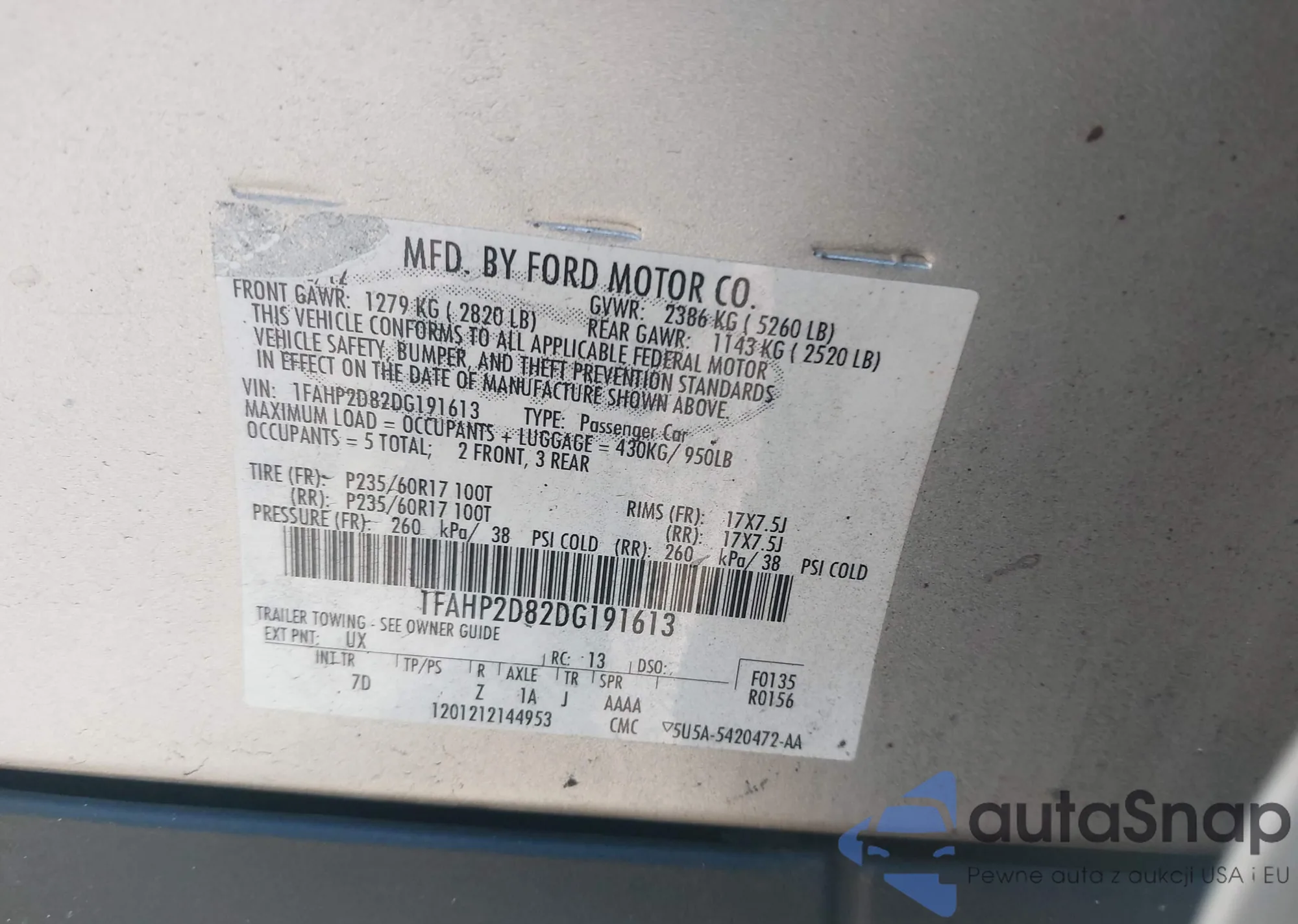 LOT: 41109867 VIN: 1FAHP2D82DG191613