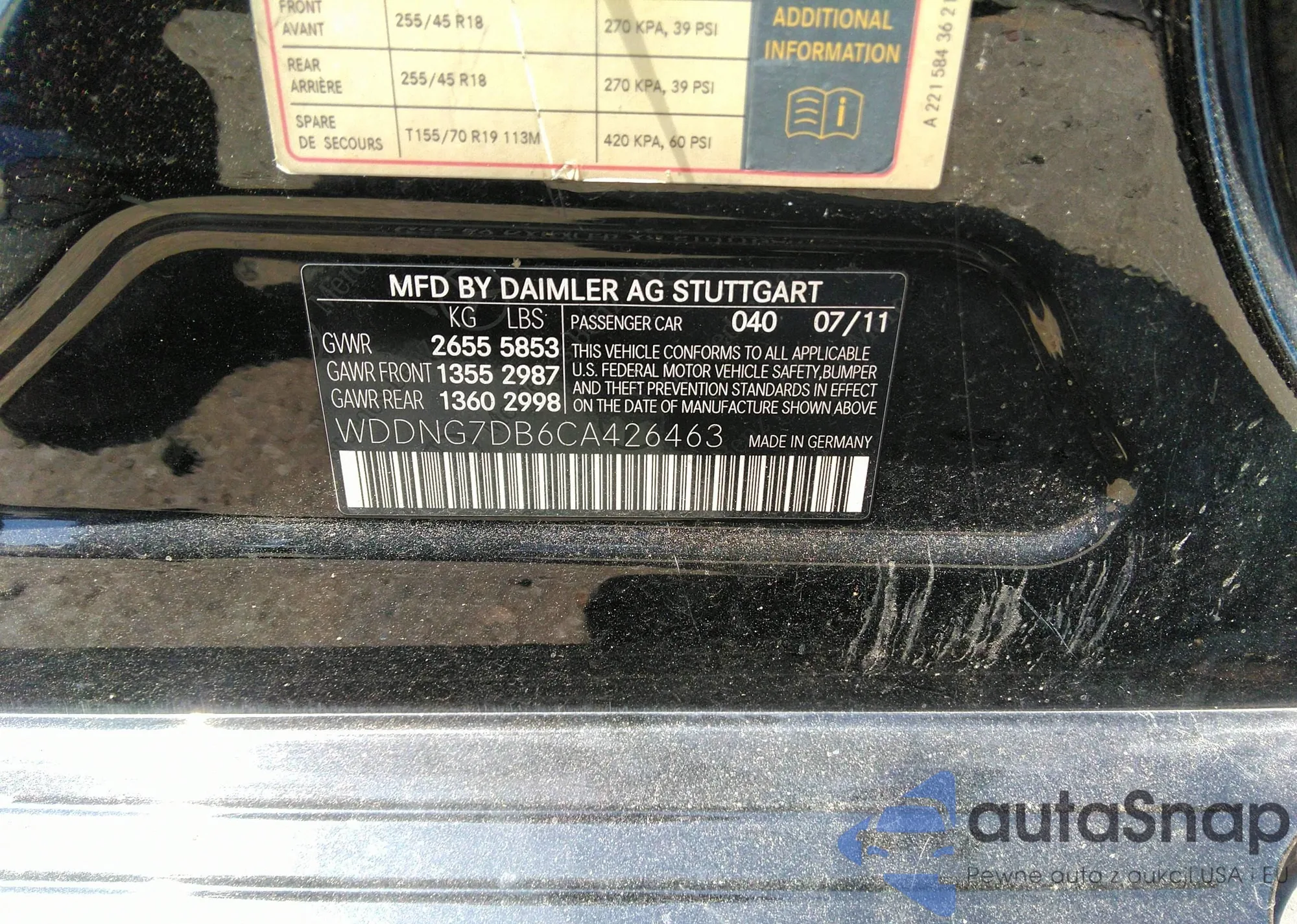LOT: 41463127 VIN: WDBUF56X18B228816