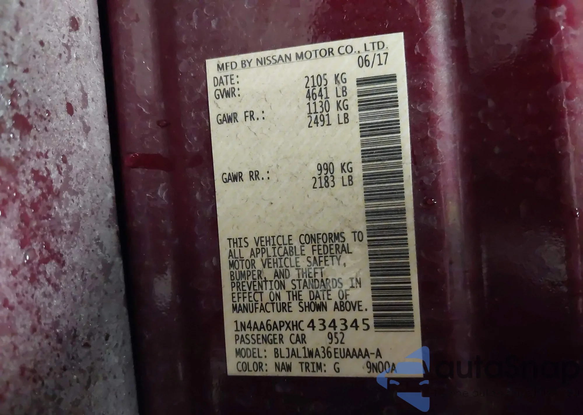 LOT: 40993822 VIN: 1N4AA6APXHC434345