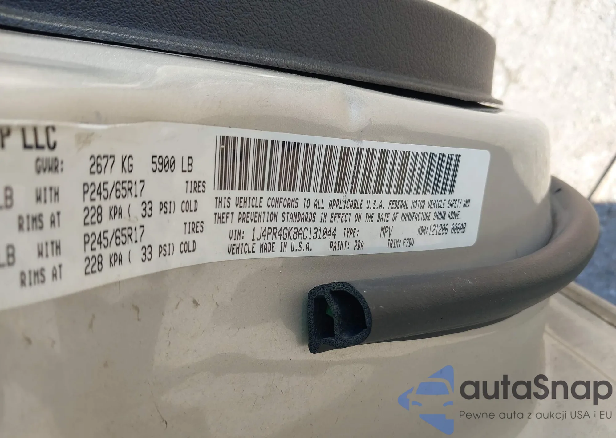 • VIN 1J4PR4GK8AC131044