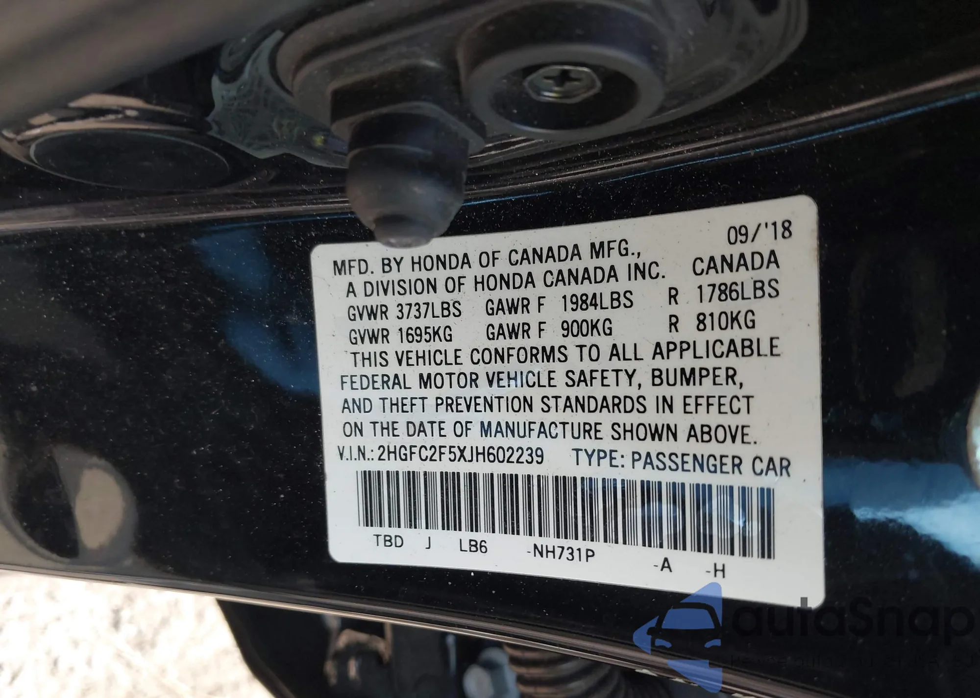 • VIN 2HGFC2F5XJH602239