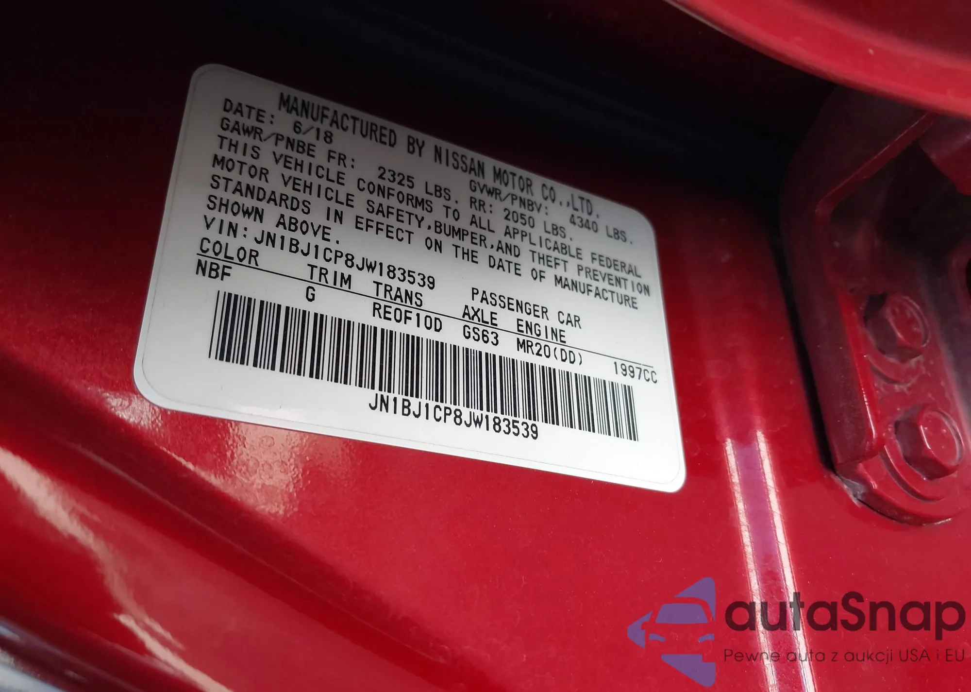 LOT: 40844116 VIN: JN1BJ1CP8JW183539