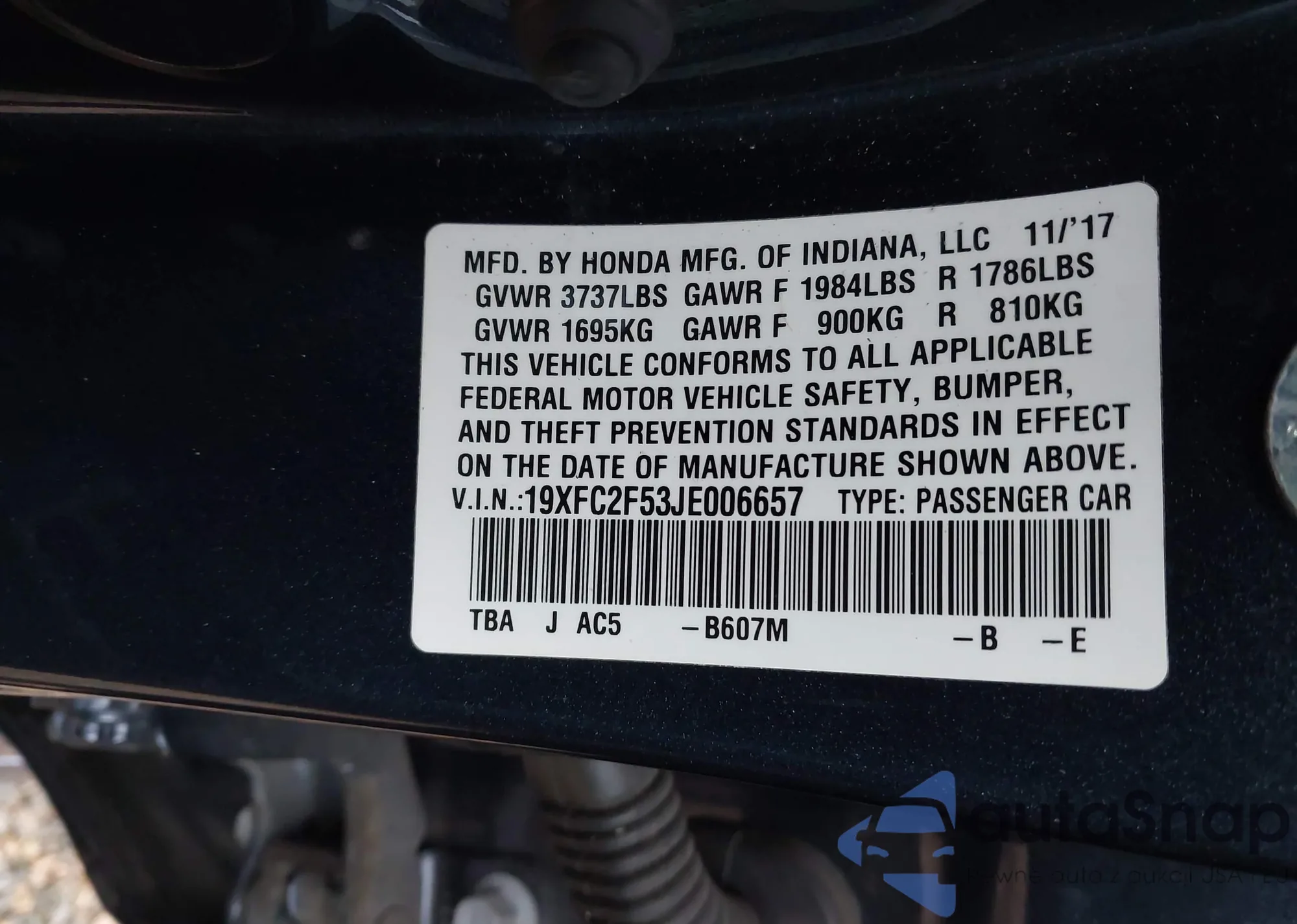 • VIN 19XFC2F53JE006657