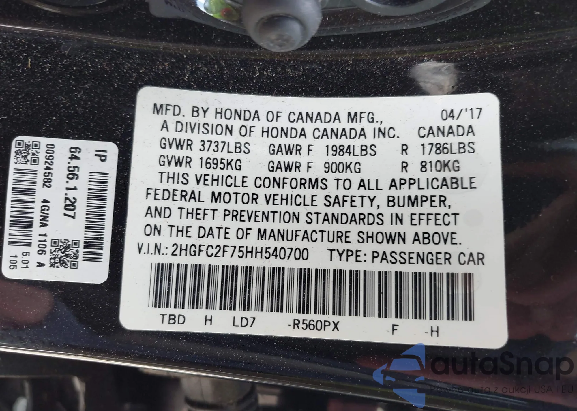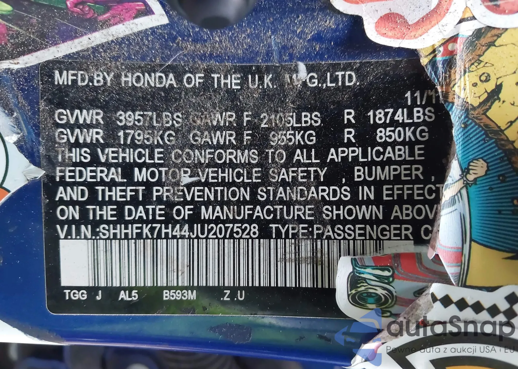 • VIN SHHFK7H44JU207528
