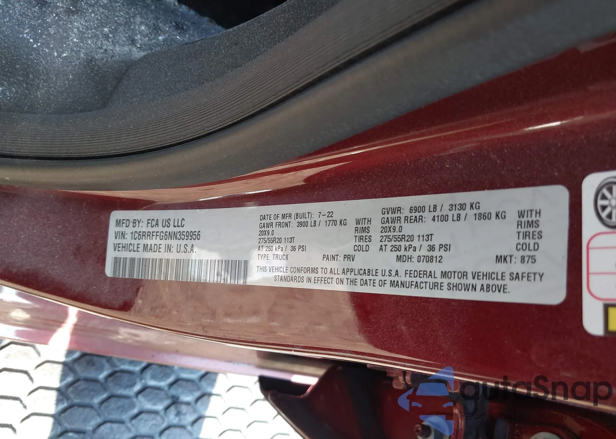 • VIN 1C6RRFFG6NN359956