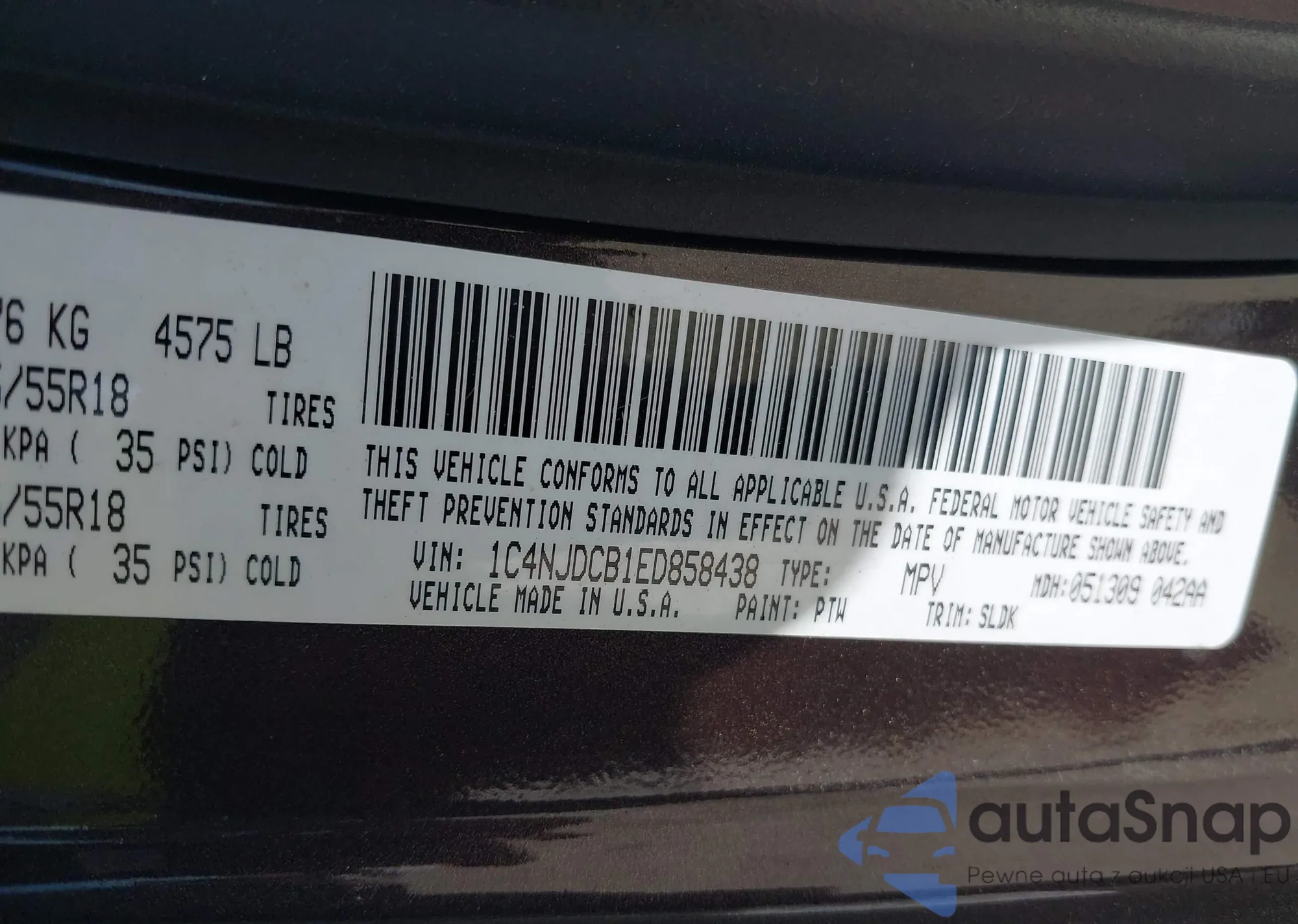 LOT: 40499877 VIN: 1C4NJDCB1ED858438