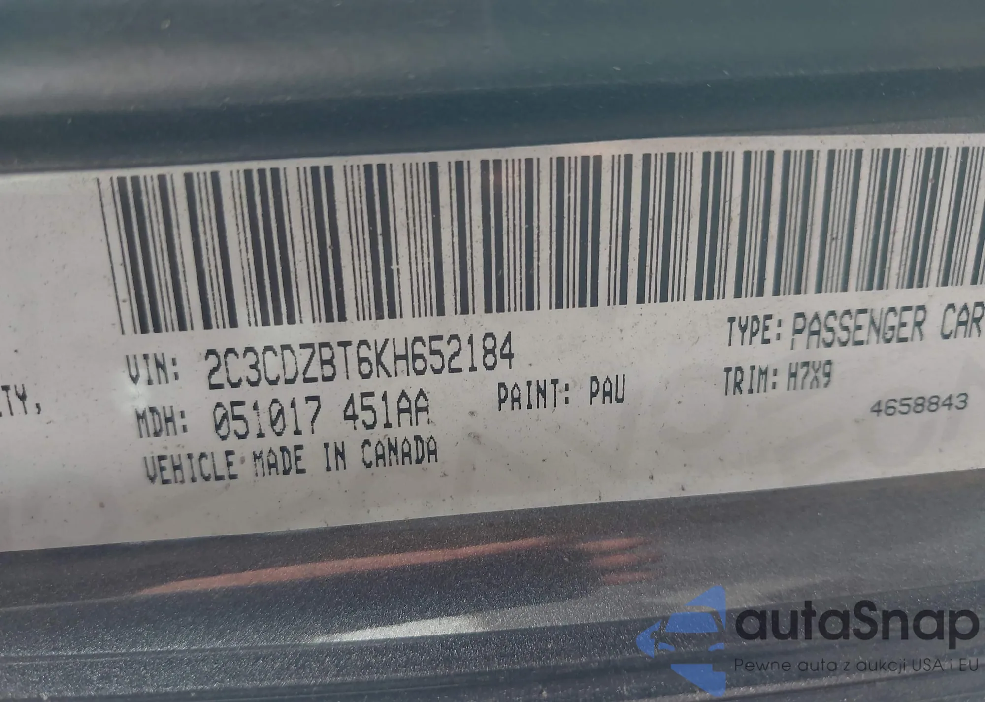 • VIN 2C3CDZBT6KH652184