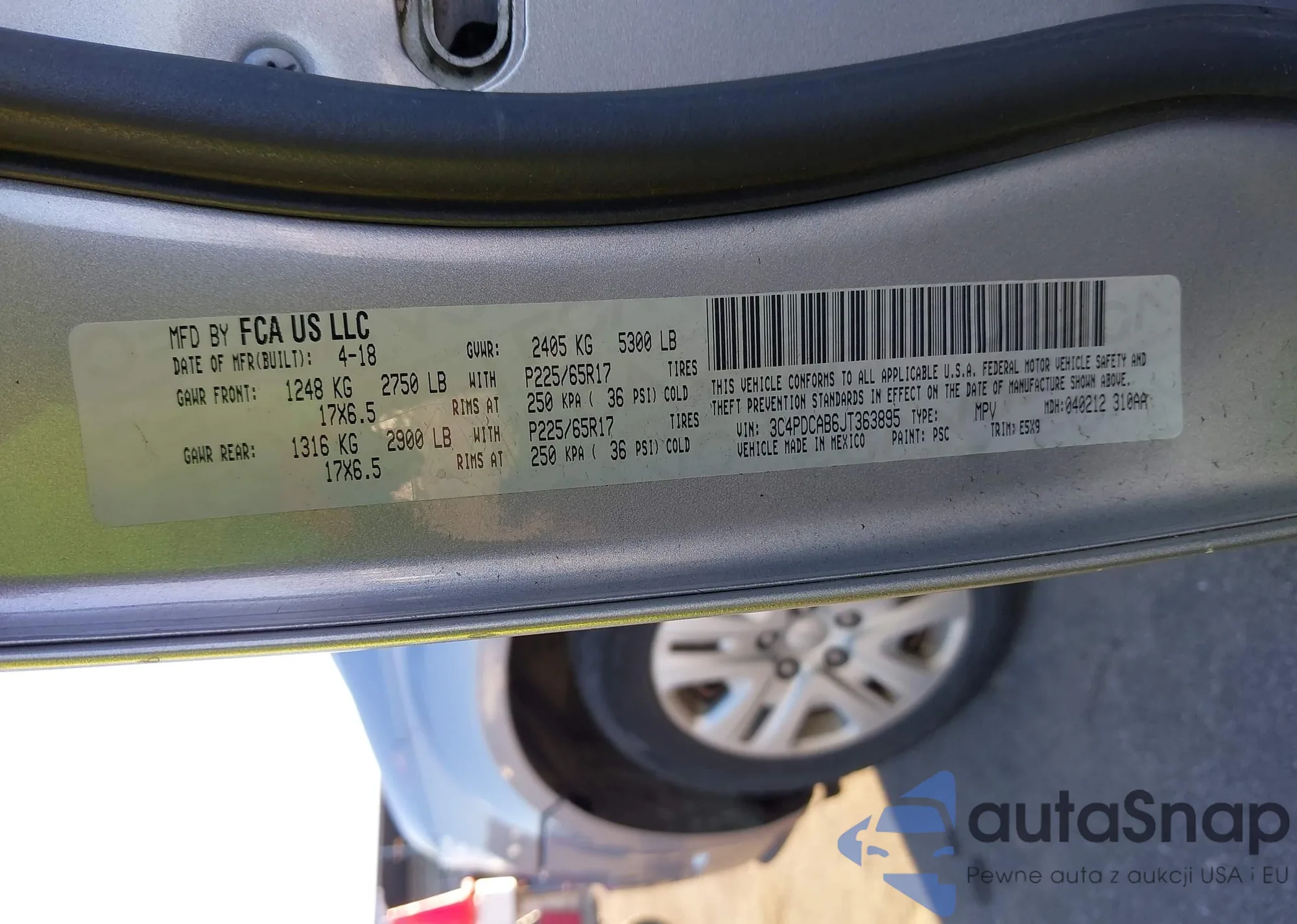• VIN 3C4PDCAB6JT363895