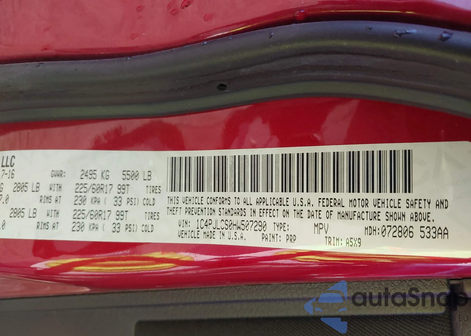 • VIN 1C4PJLCS0HW507290