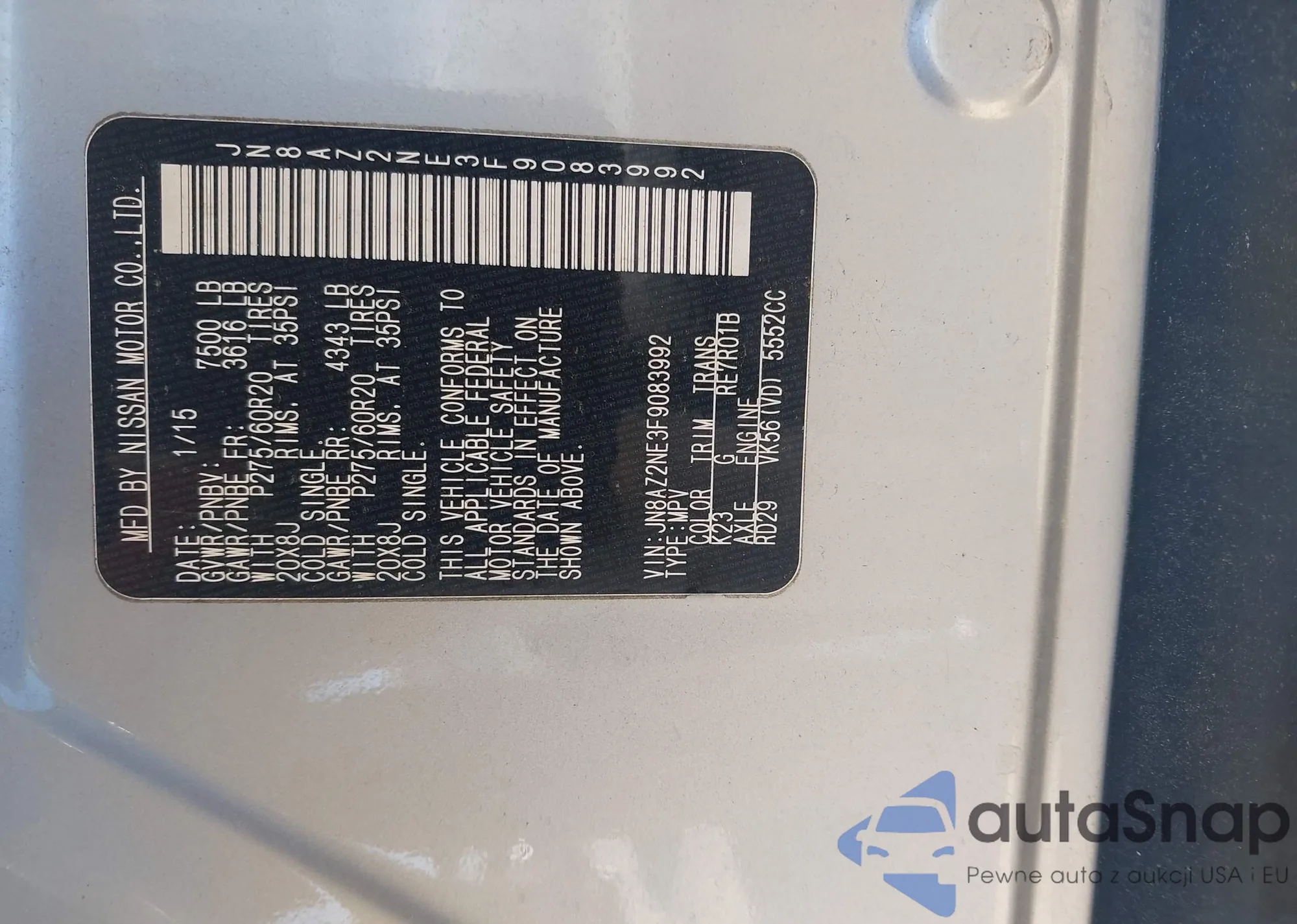 • VIN JN8AZ2NE3F9083992