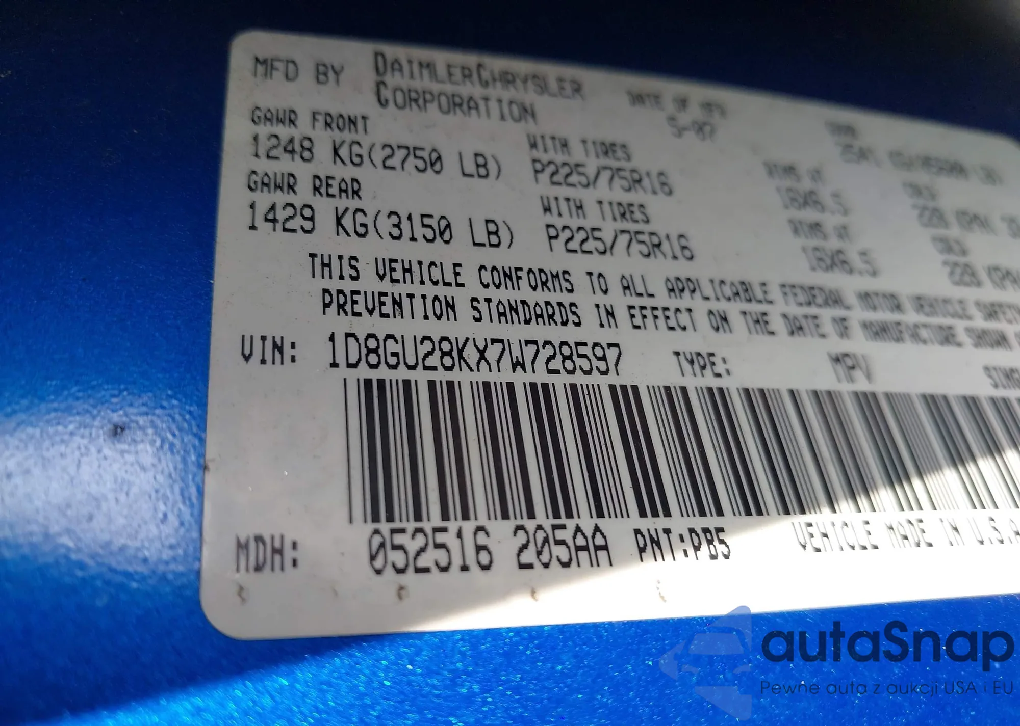 LOT: 41270377 VIN: 2C3CCAGT5DH652855