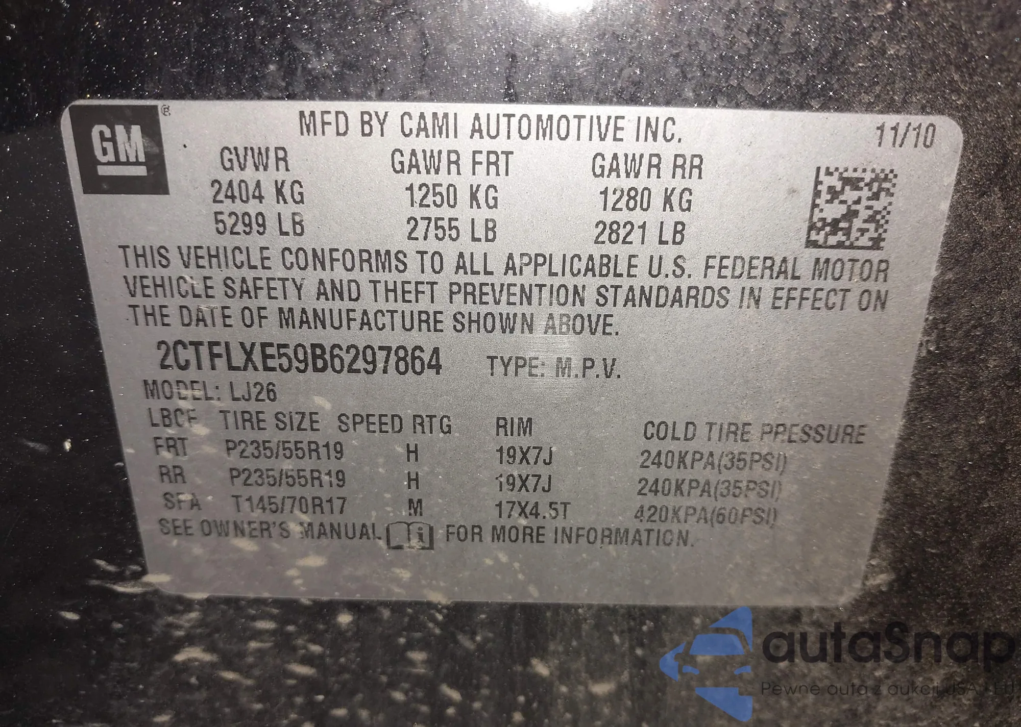 LOT: 39969802 VIN: 2CTFLXE59B6297864