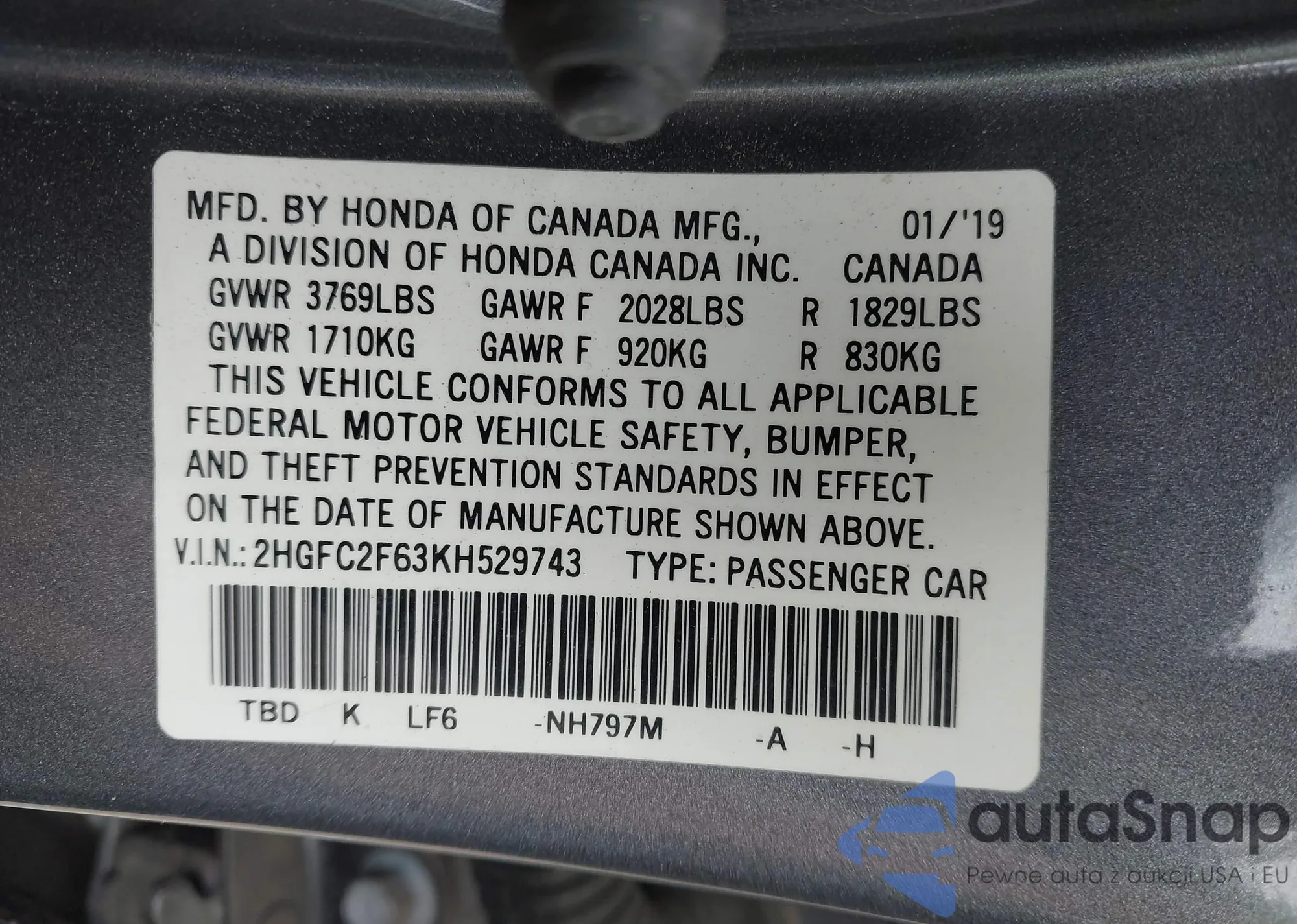• VIN 2HGFC2F59JH583635