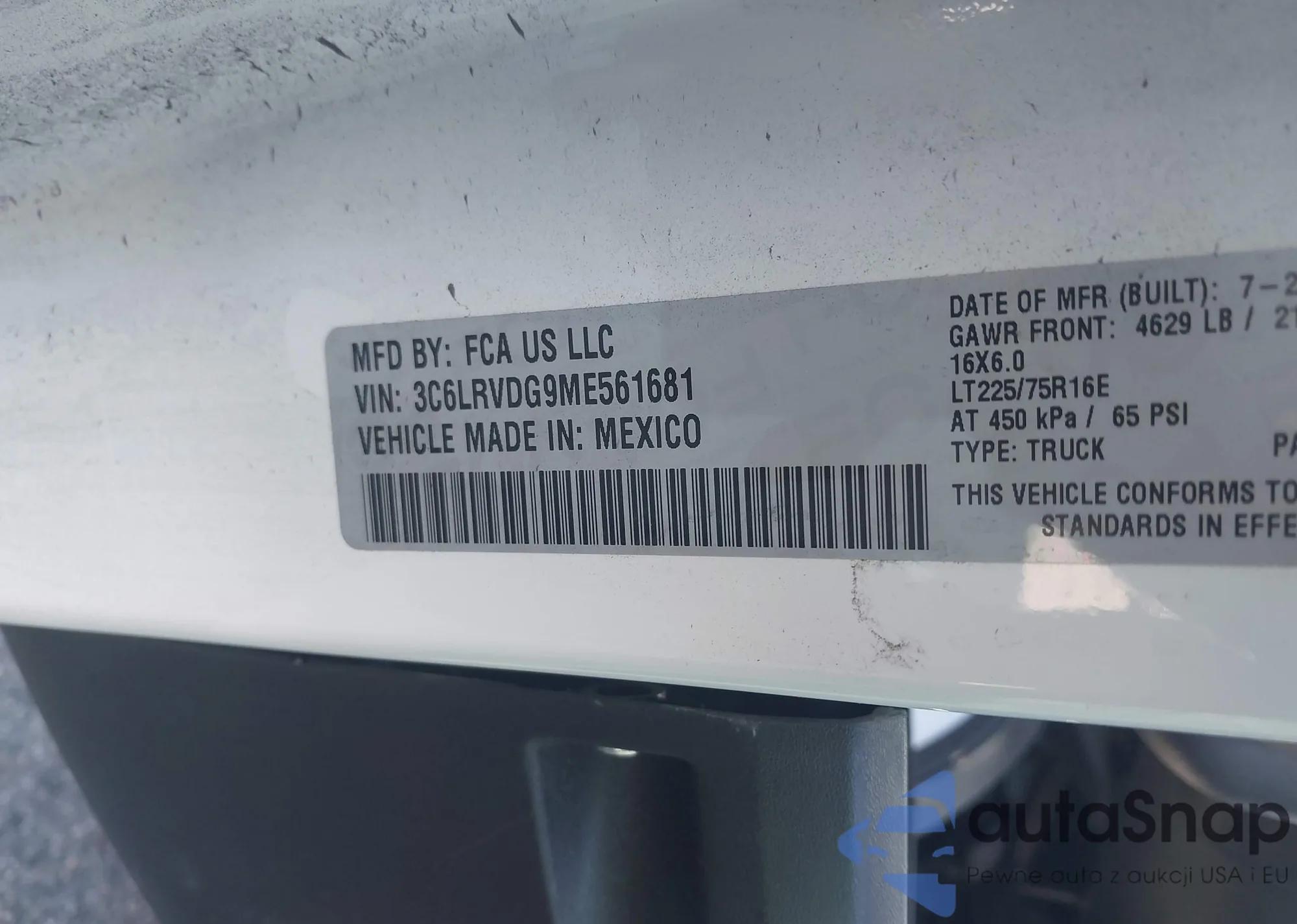 LOT: 41345801 VIN: 3C6LRVDG9ME561681