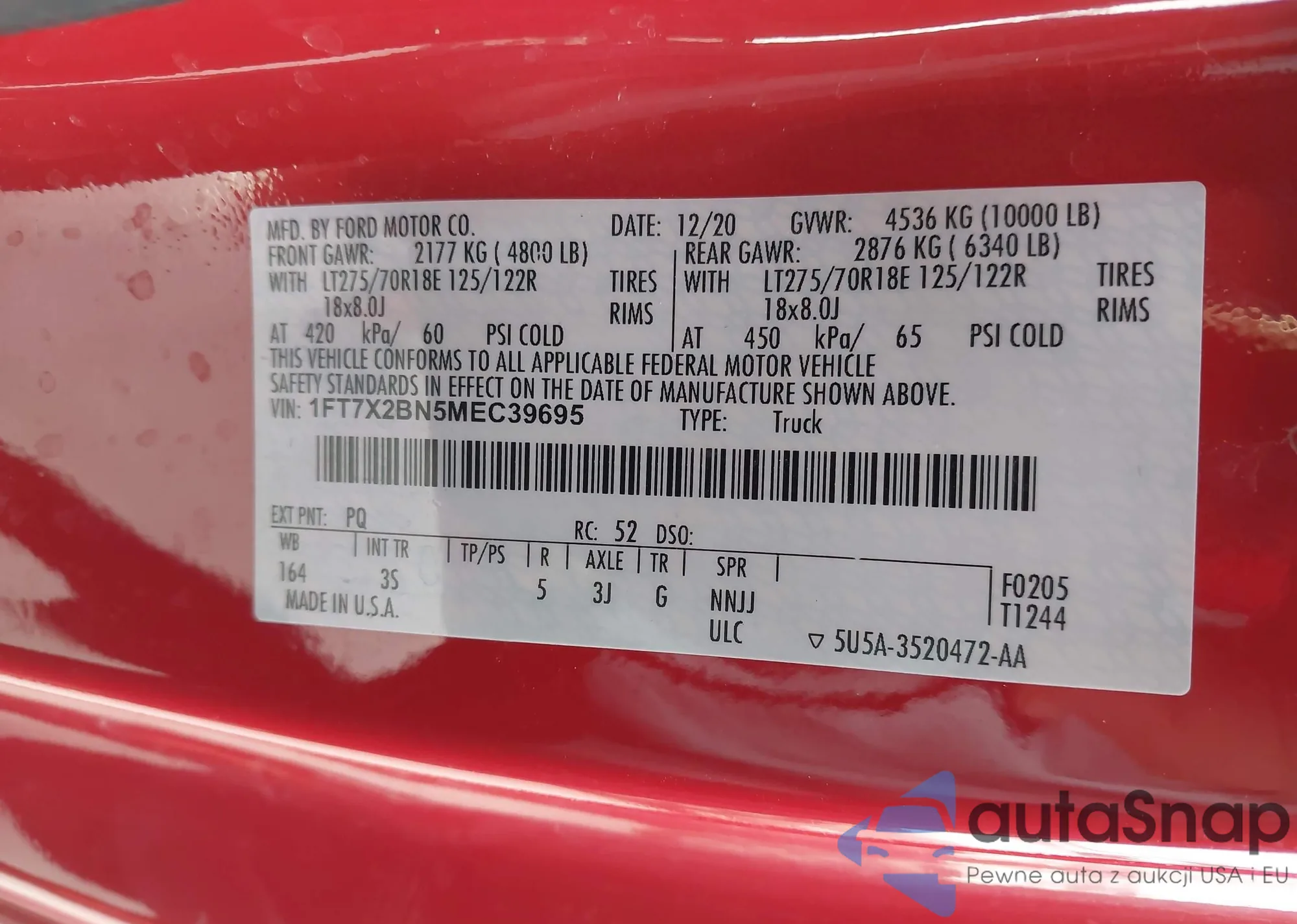 • VIN 1FT7X2BN5MEC39695