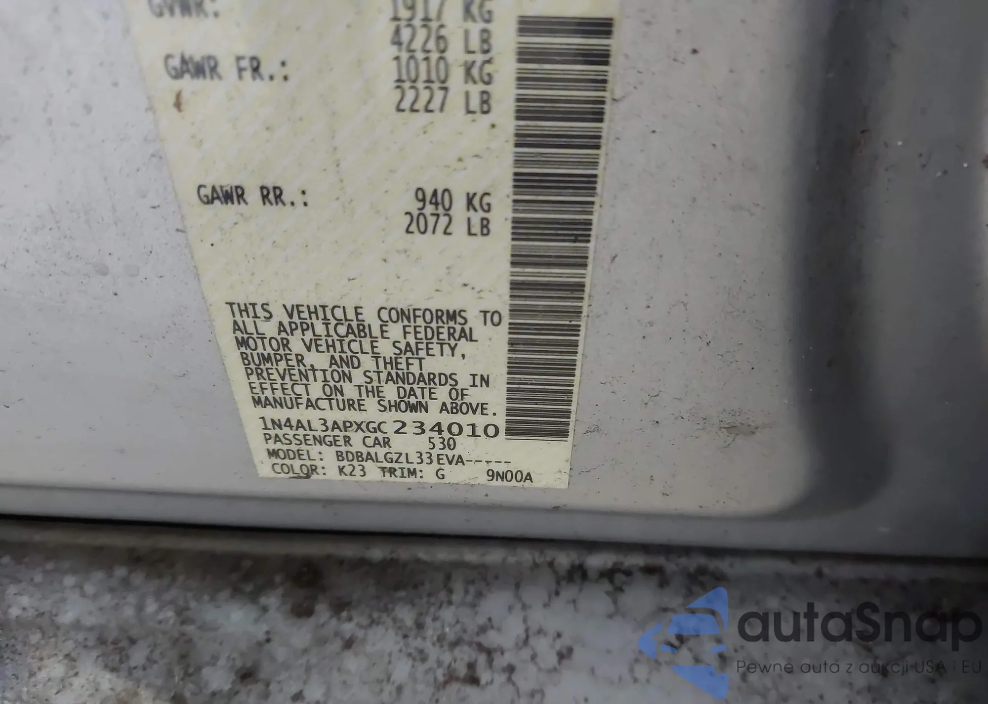 • VIN 1N4AL2AP0CC125771