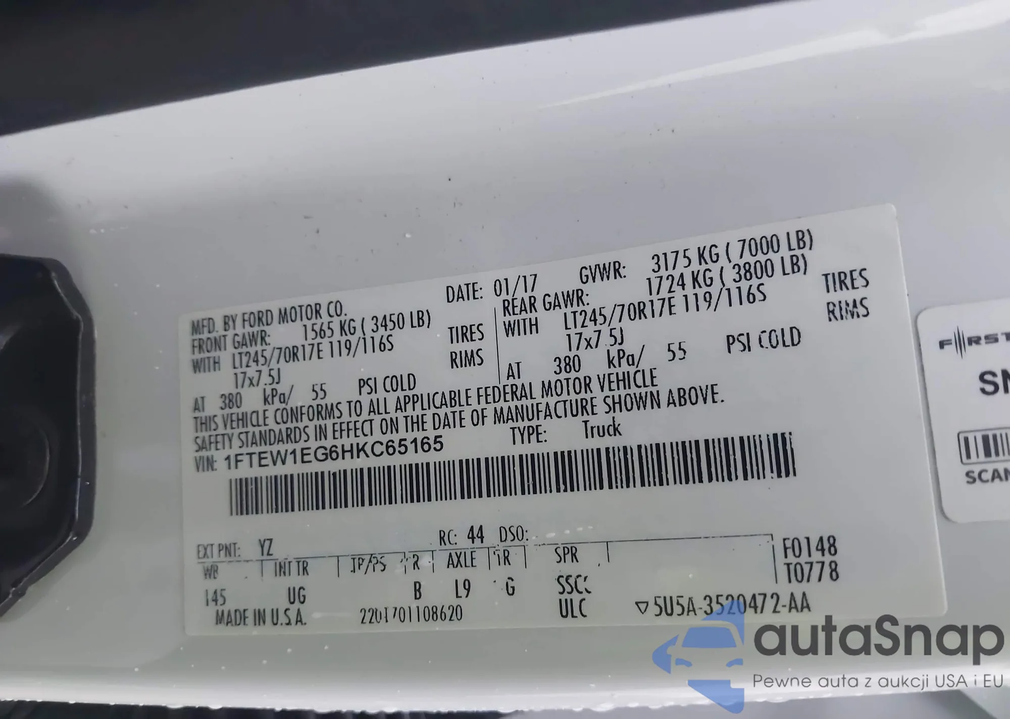 LOT: 41463070 VIN: 1FTEW1EG6HKC65165