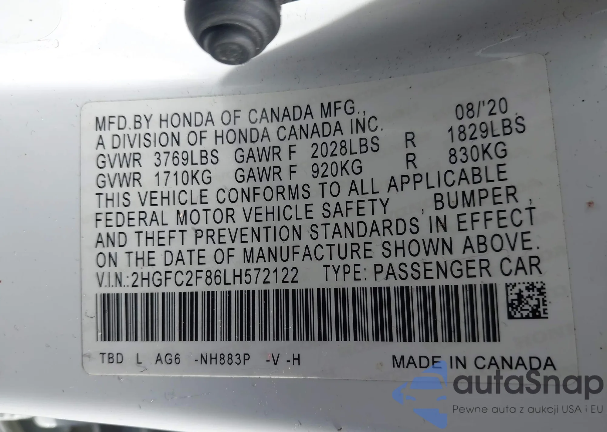 • VIN 2HGFC2F86LH572122