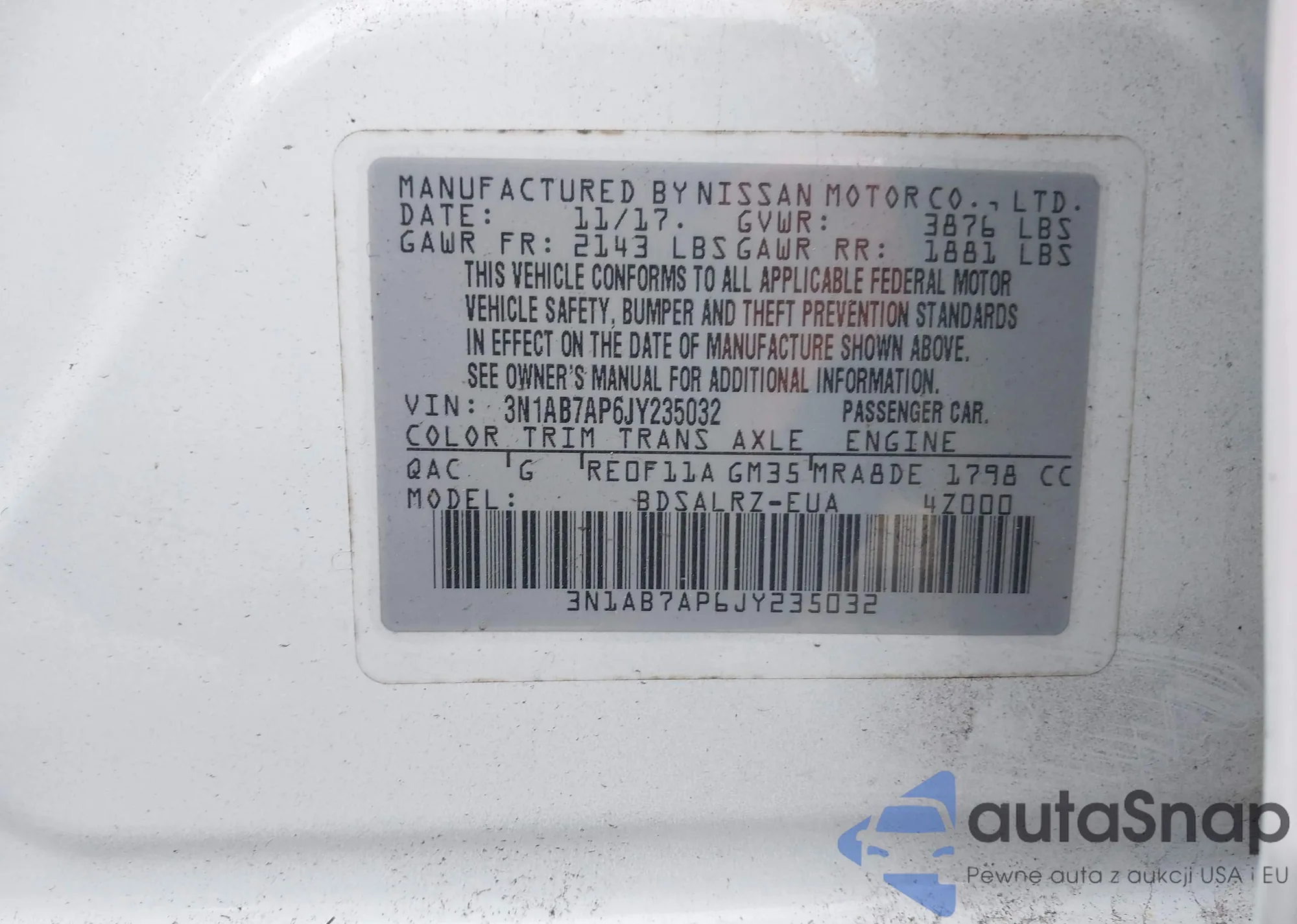 • VIN 3N1AB7AP6JY235032