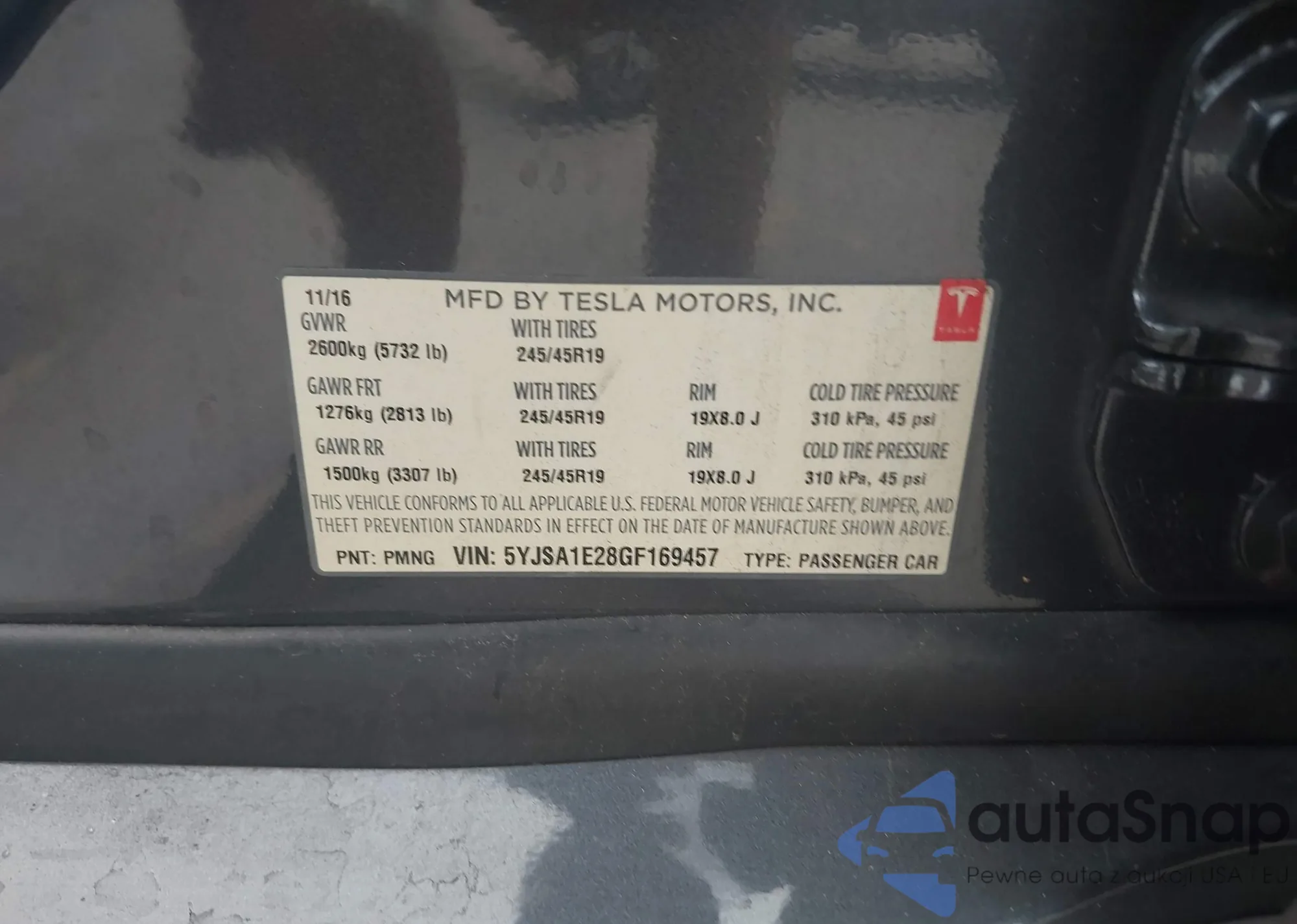 • VIN 5YJSA1E28GF169457