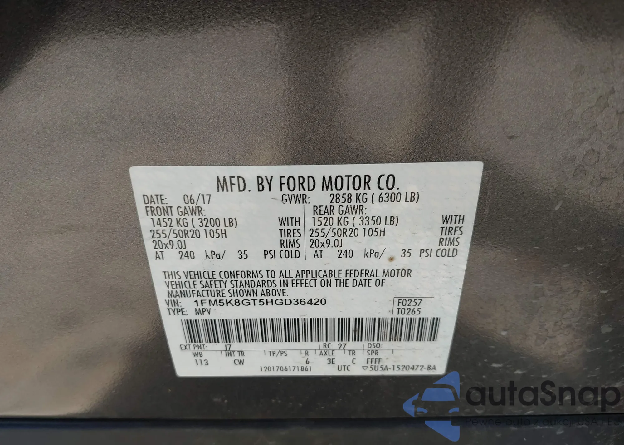 • VIN 1FMHK7D83CGA21602