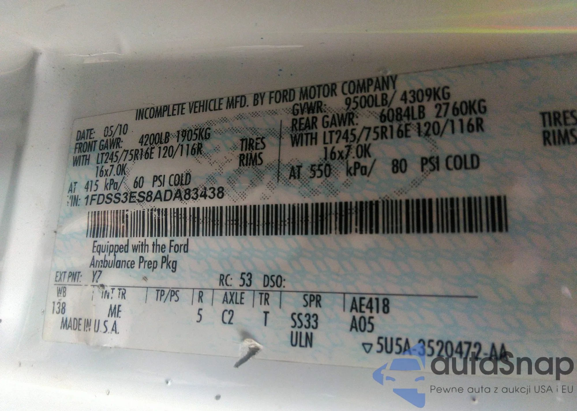 • VIN 1FDSS3ES8ADA83438