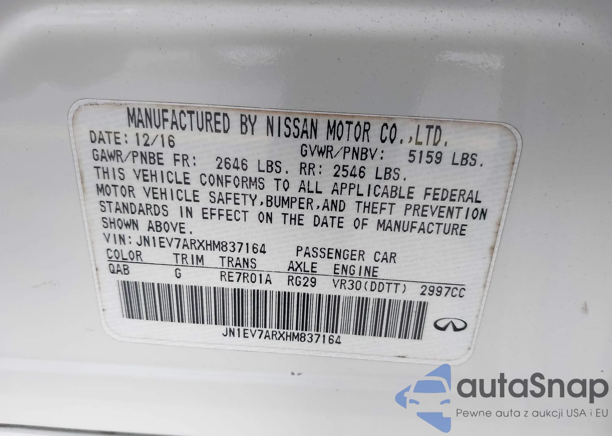• VIN JN1EV7ARXHM837164