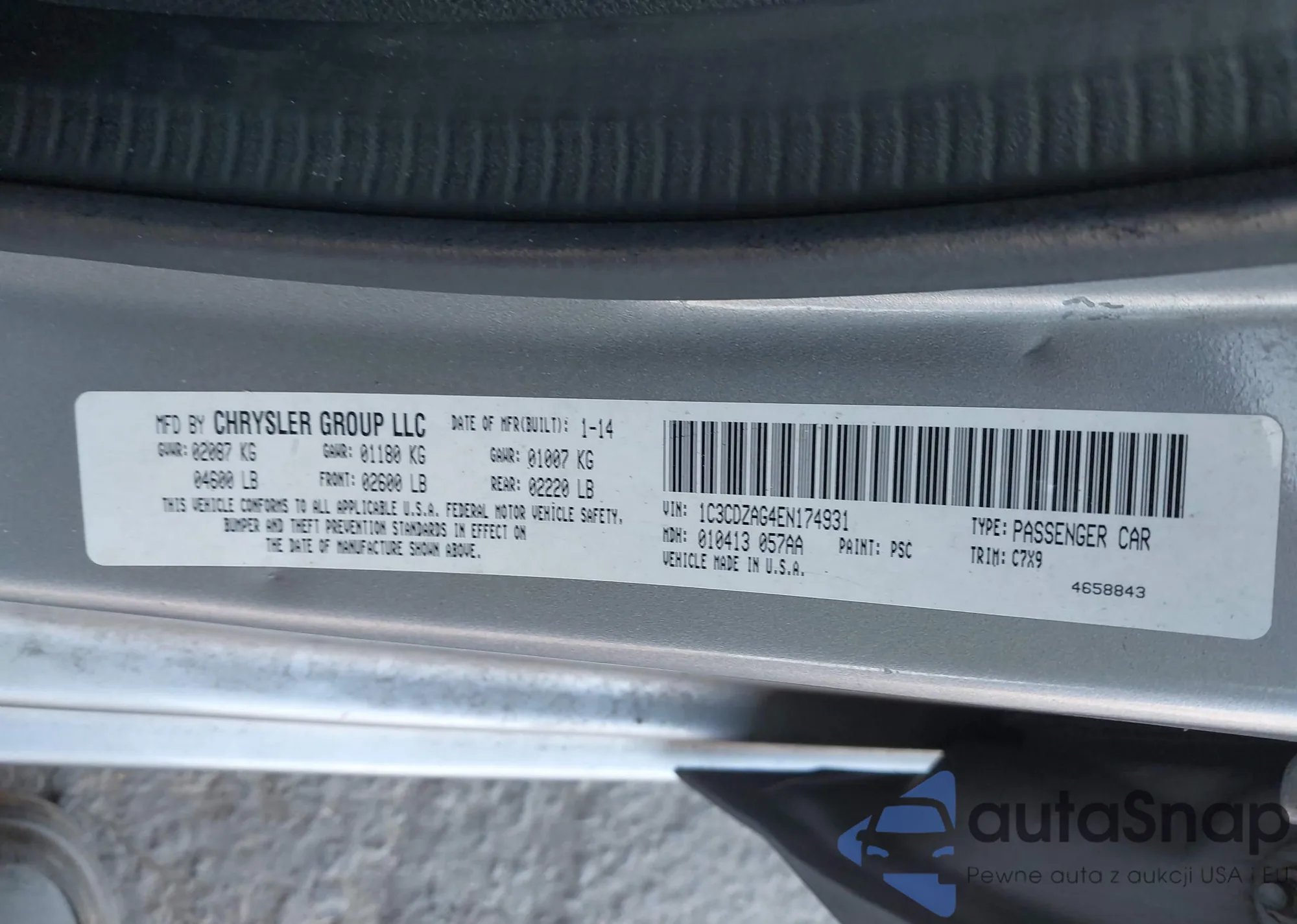 LOT: 38764222 VIN: 2C3CDYAGXEH298351