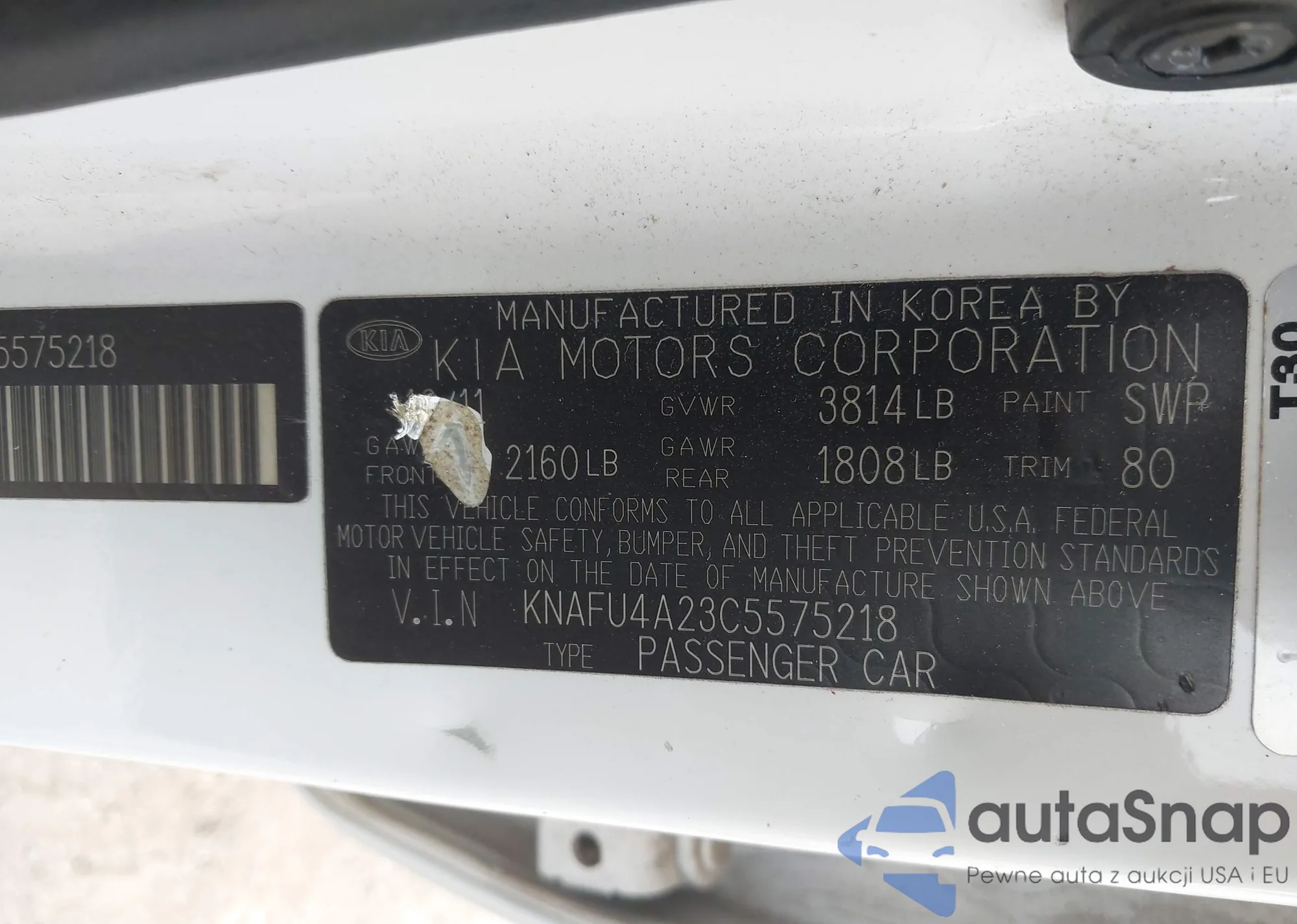 LOT: 41388536 VIN: KNAFU4A23C5575218