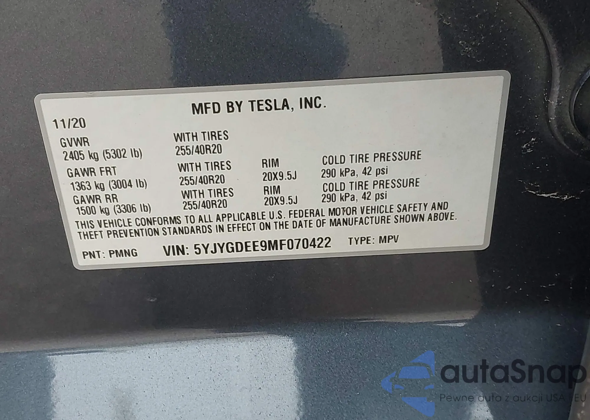 LOT: 41431631 VIN: 5YJYGDEE9MF070422