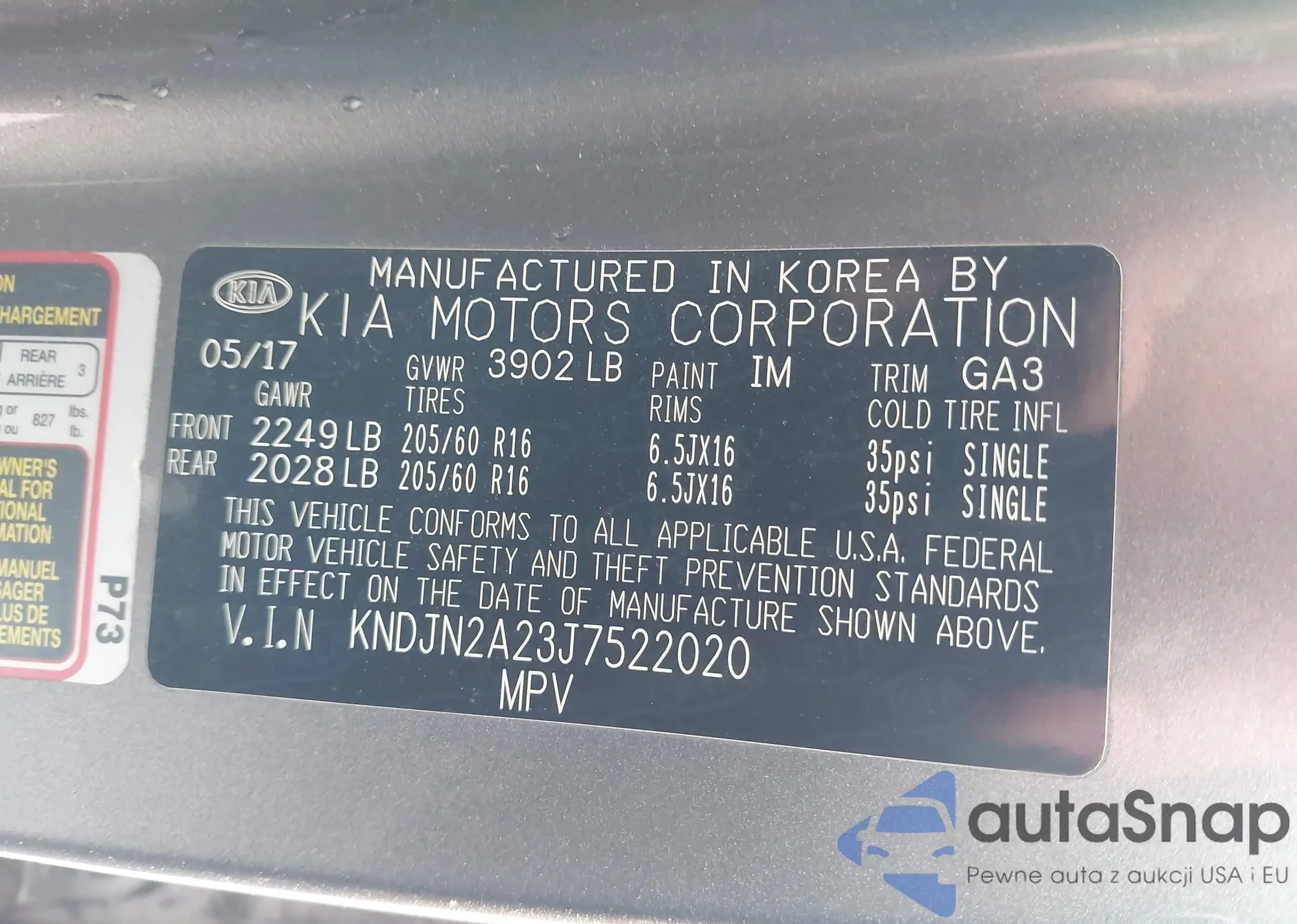 • VIN KNAFU4A23C5575218