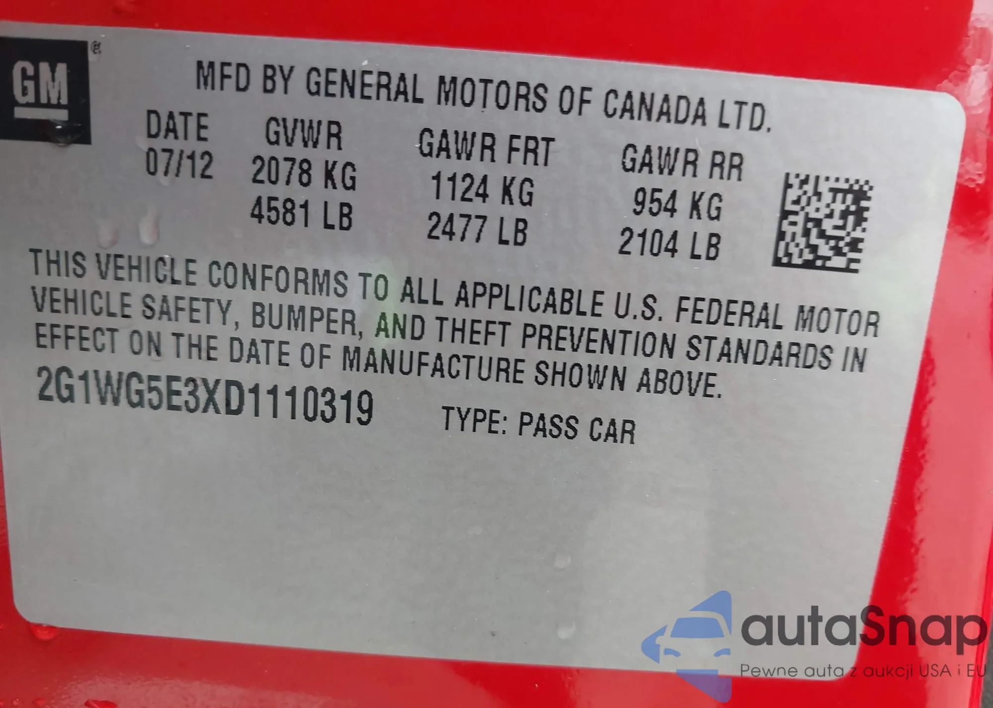 LOT: 41508022 VIN: 2G1WG5E3XD1110319