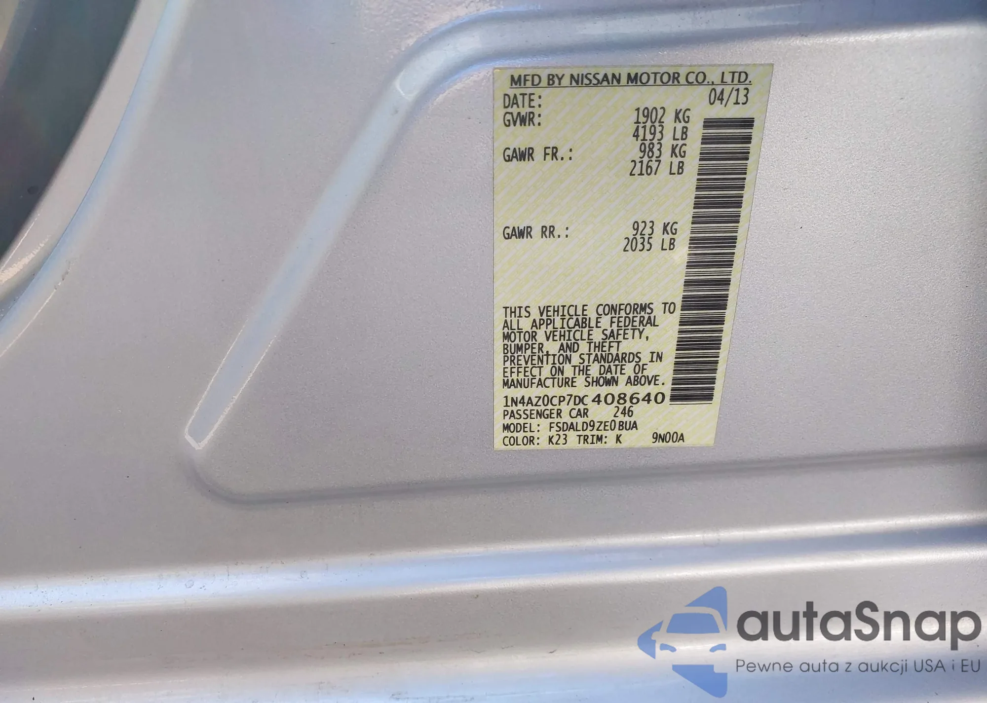 LOT: 41468613 VIN: 5NPEB4AC4EH914410