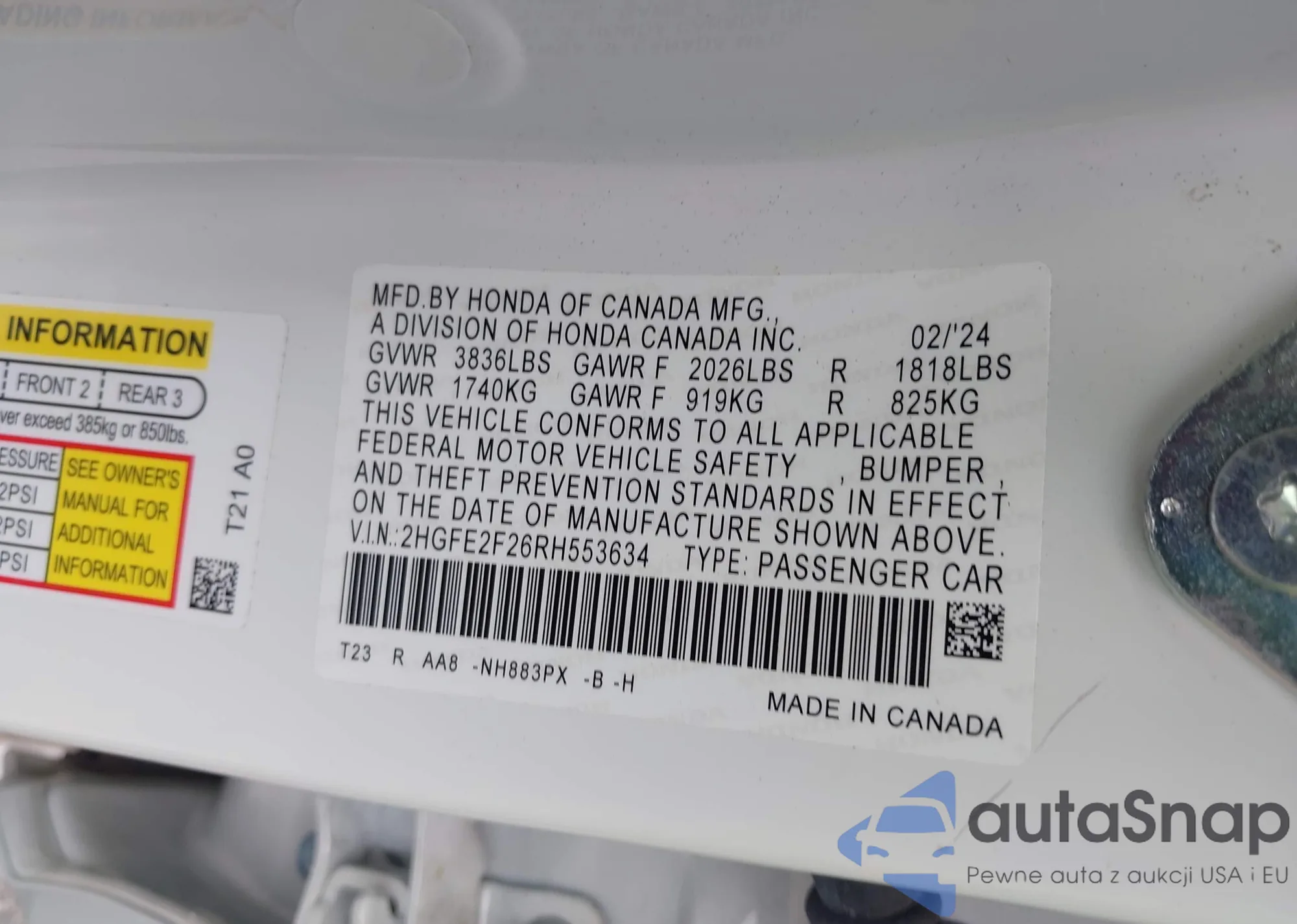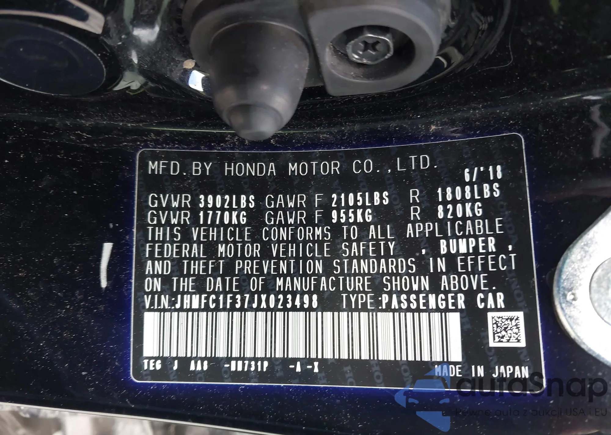 • VIN 1HGCV1F38MA102346