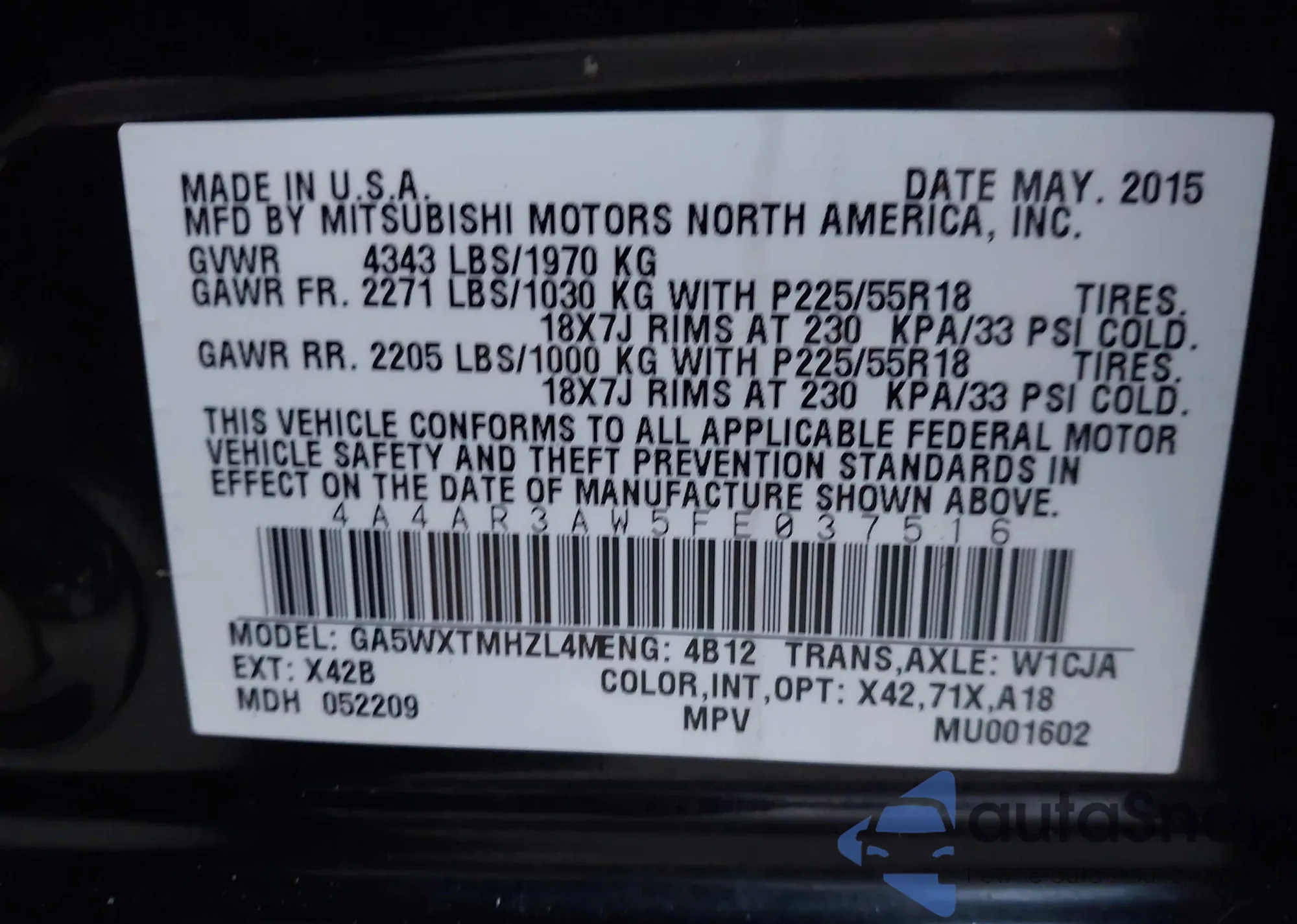 • VIN 4A4AR3AW5FE037516