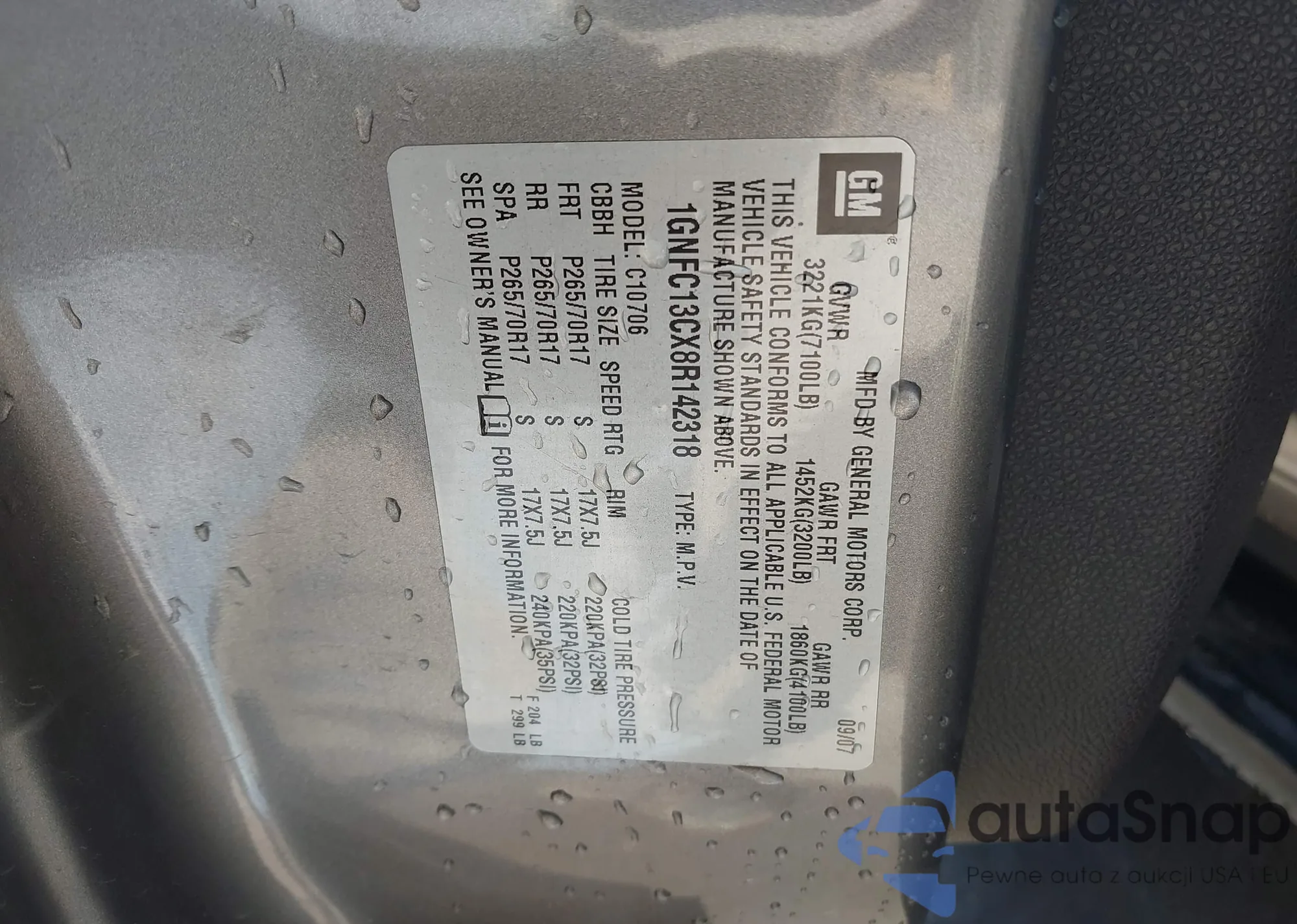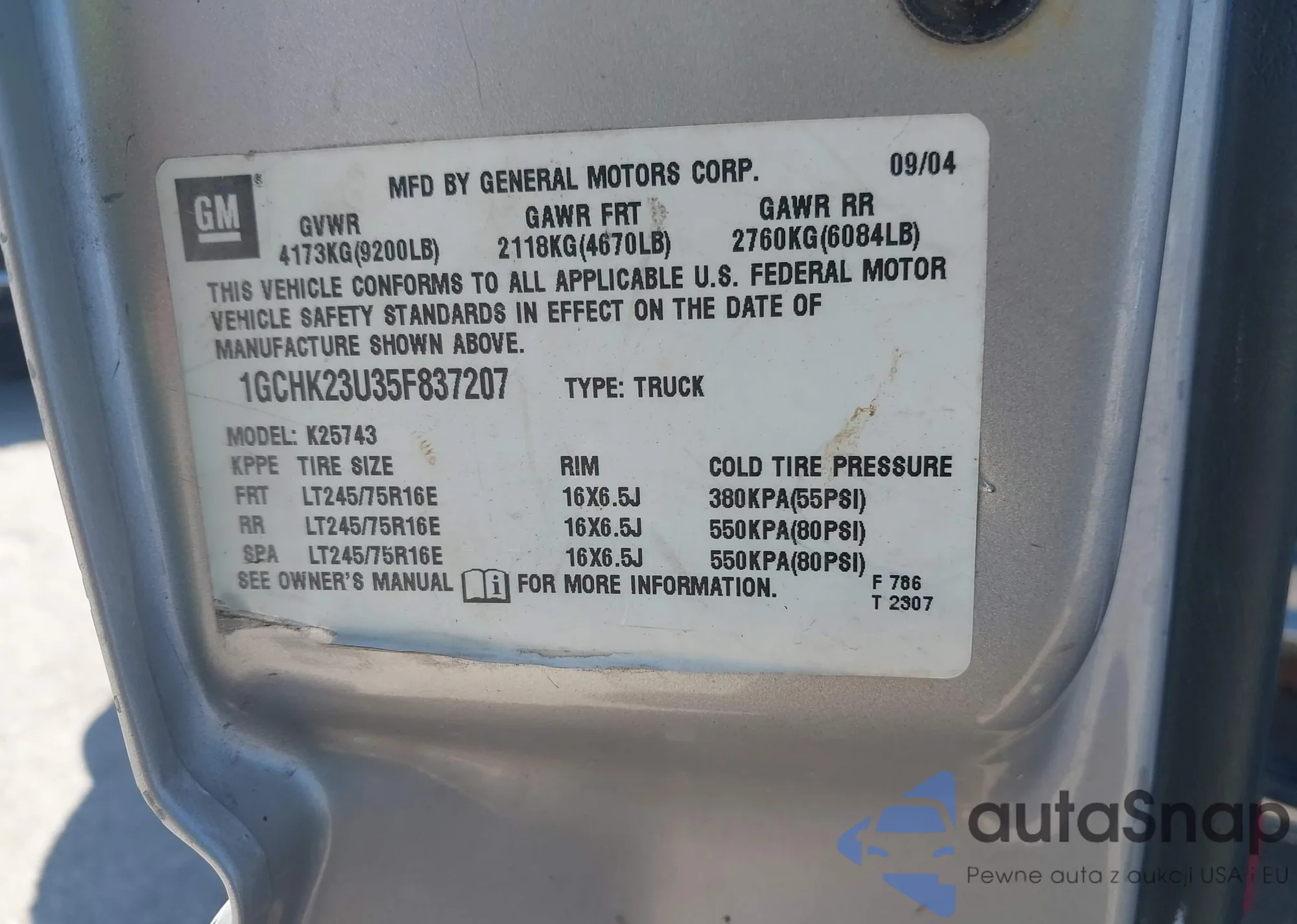 LOT: 40450003 VIN: 1GCHK23U35F837207