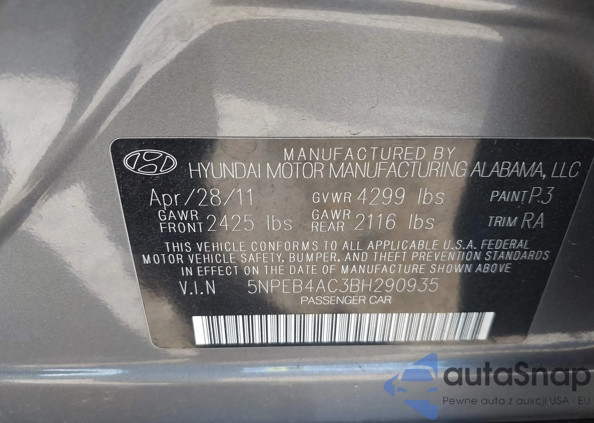 • VIN 5NPEB4AC3BH290935