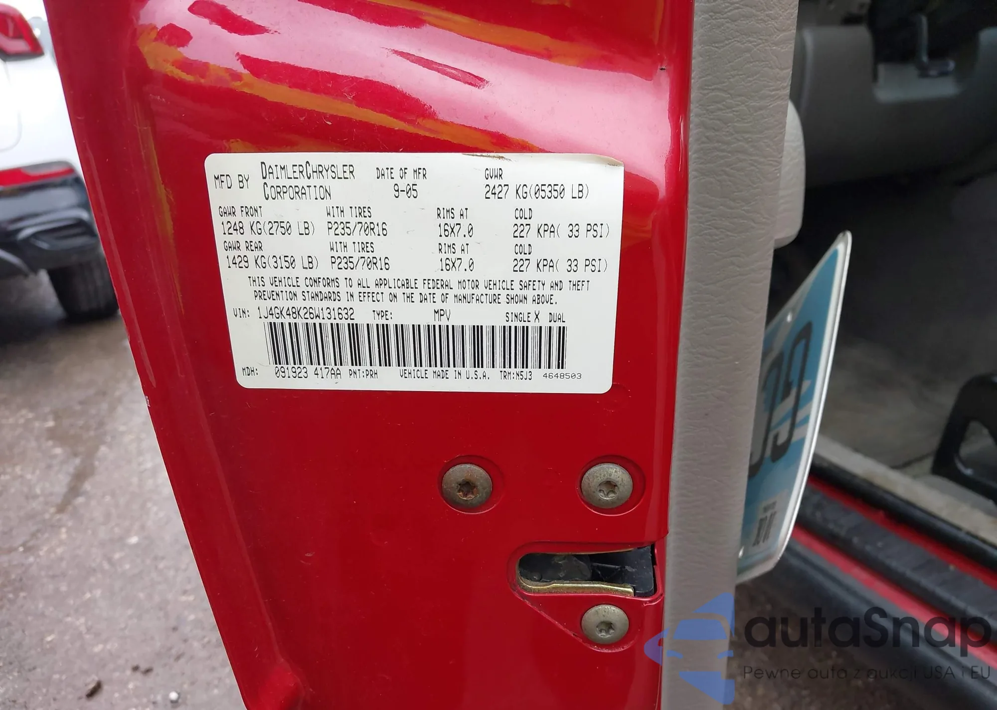 LOT: 41445614 VIN: 1J4GK48K26W131632