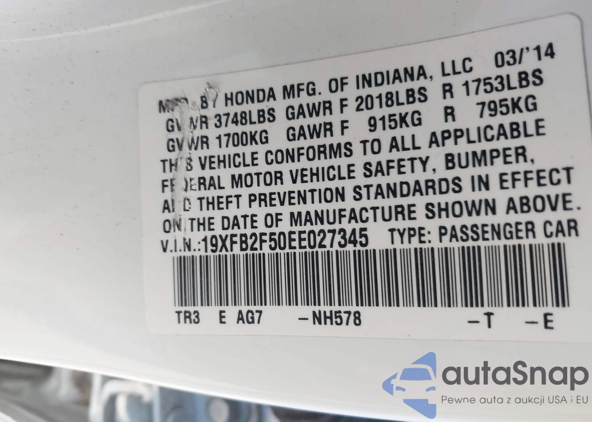 LOT: 41388575 VIN: 19XFB2F50EE027345