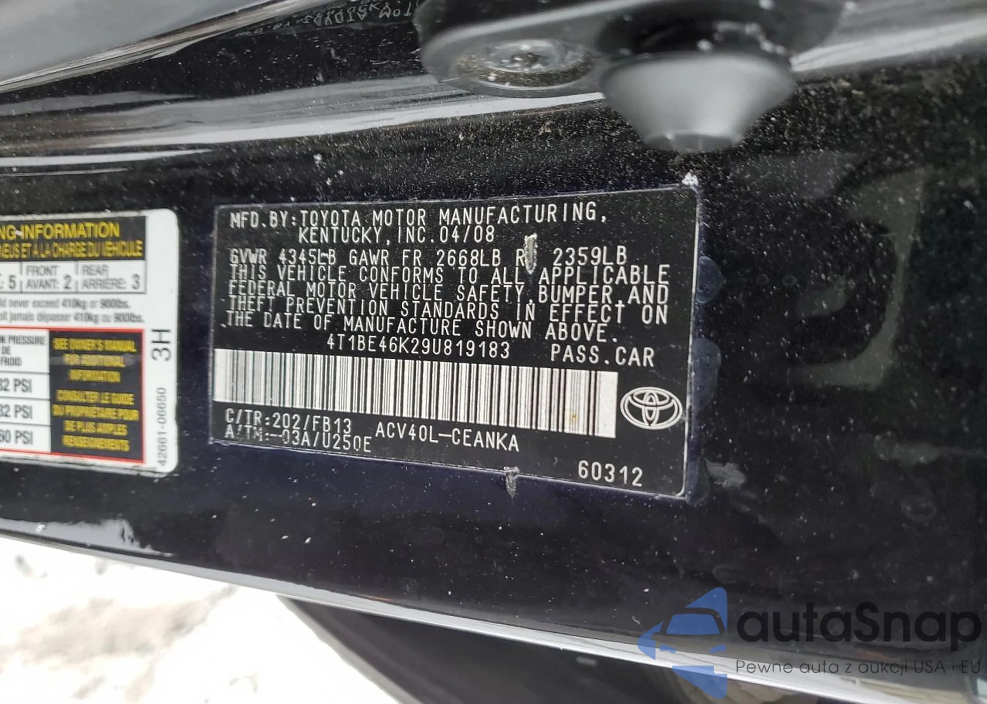LOT: 89240145 VIN: 4T1BE46K29U819183