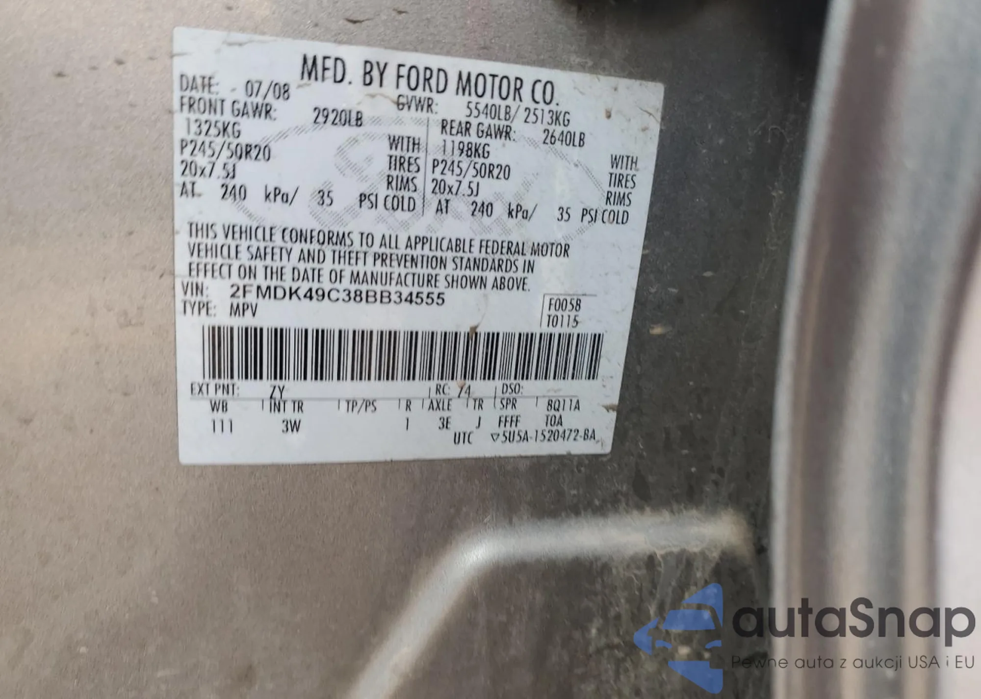 • VIN 2FMDK49C38BB34555