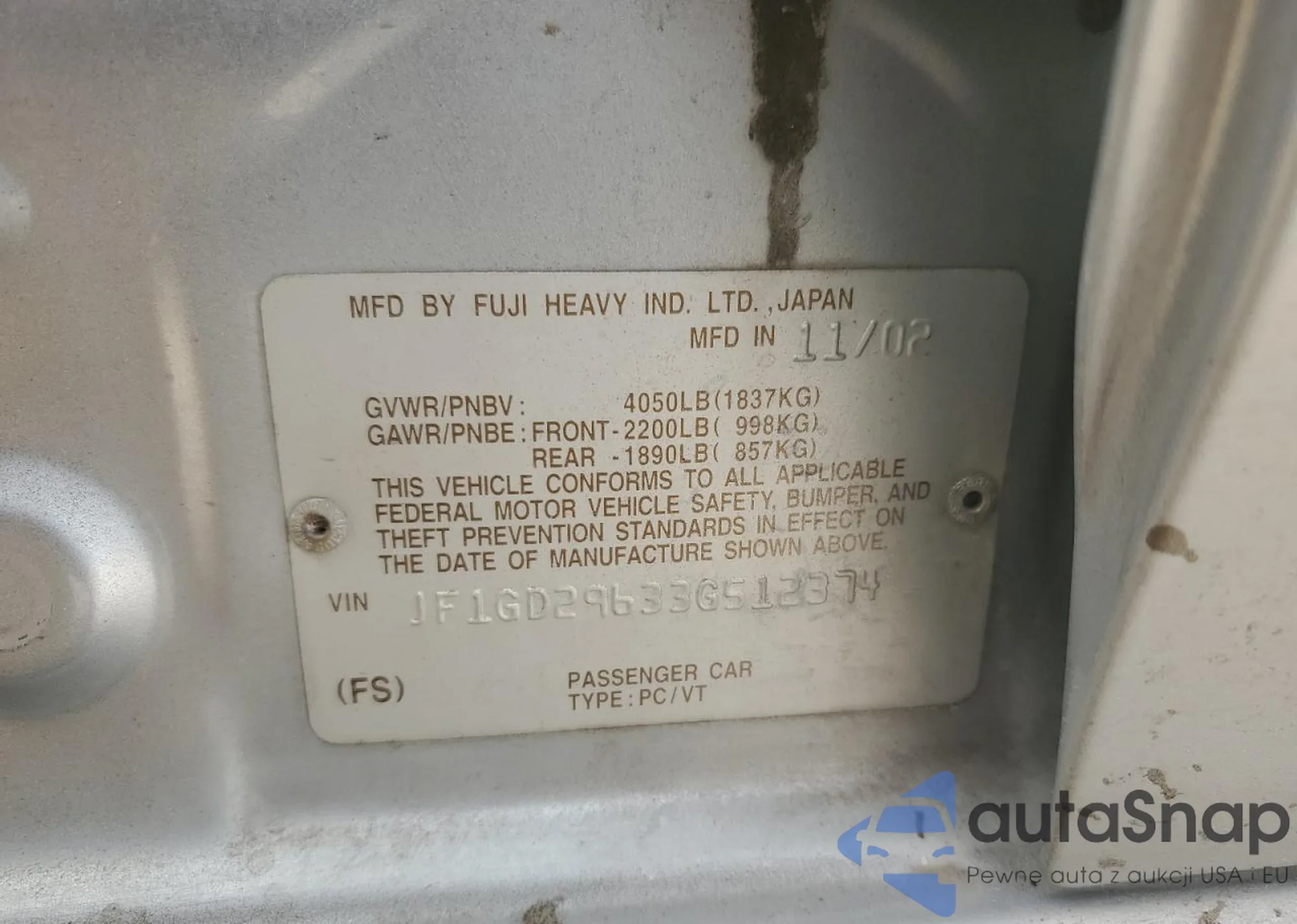 • VIN JF1GD29633G512374